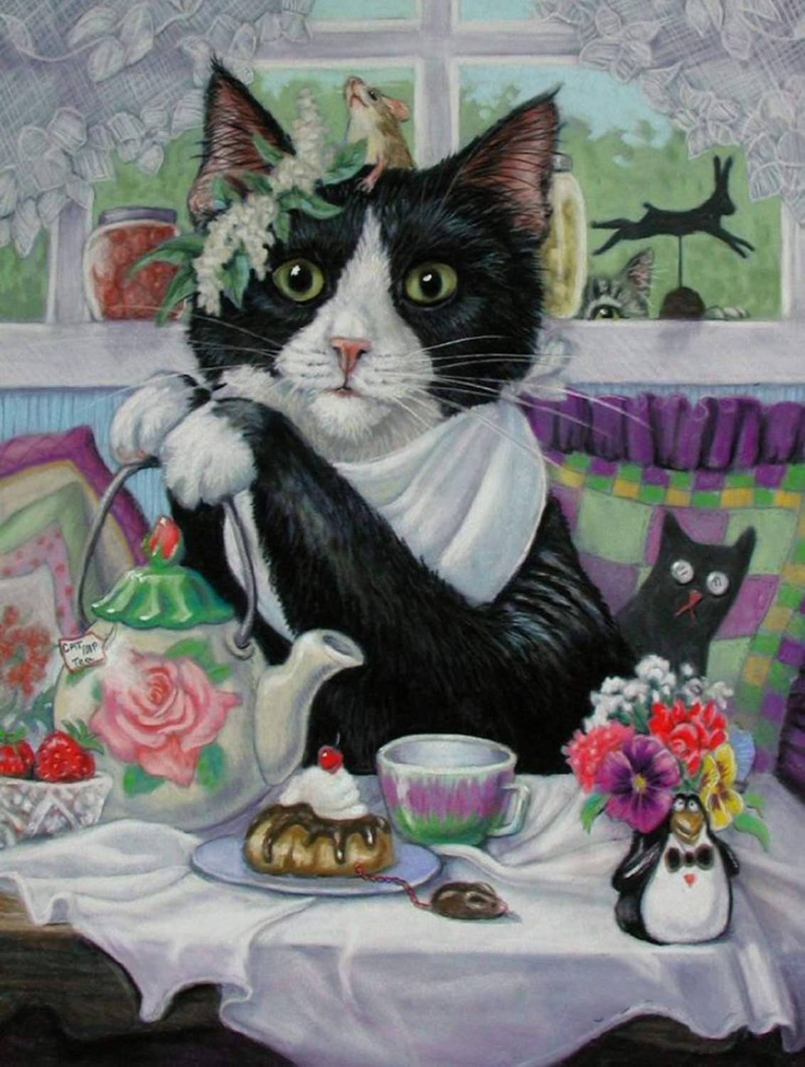 котики пьют чай