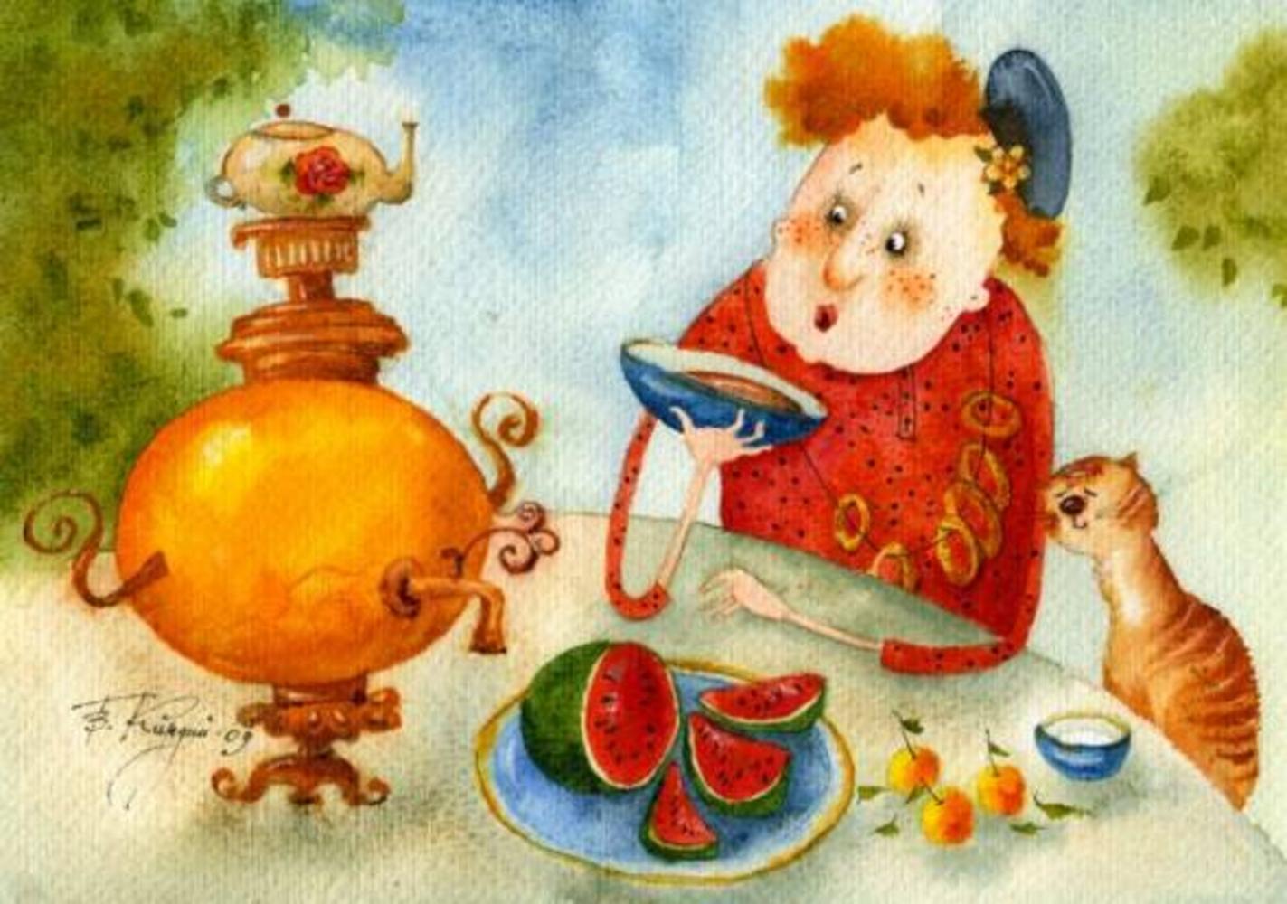 самовар акварелью