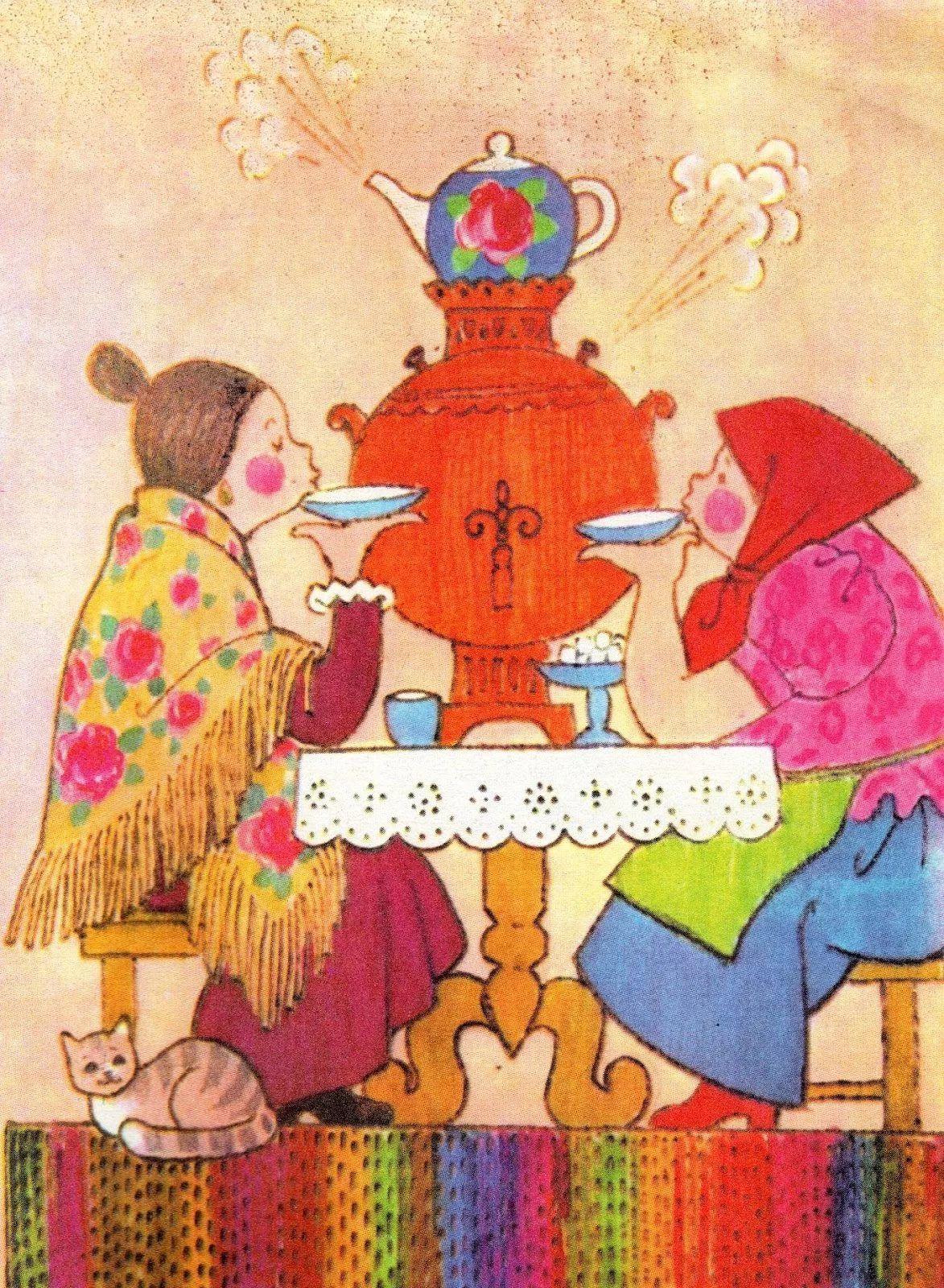 открытки с чаепитием