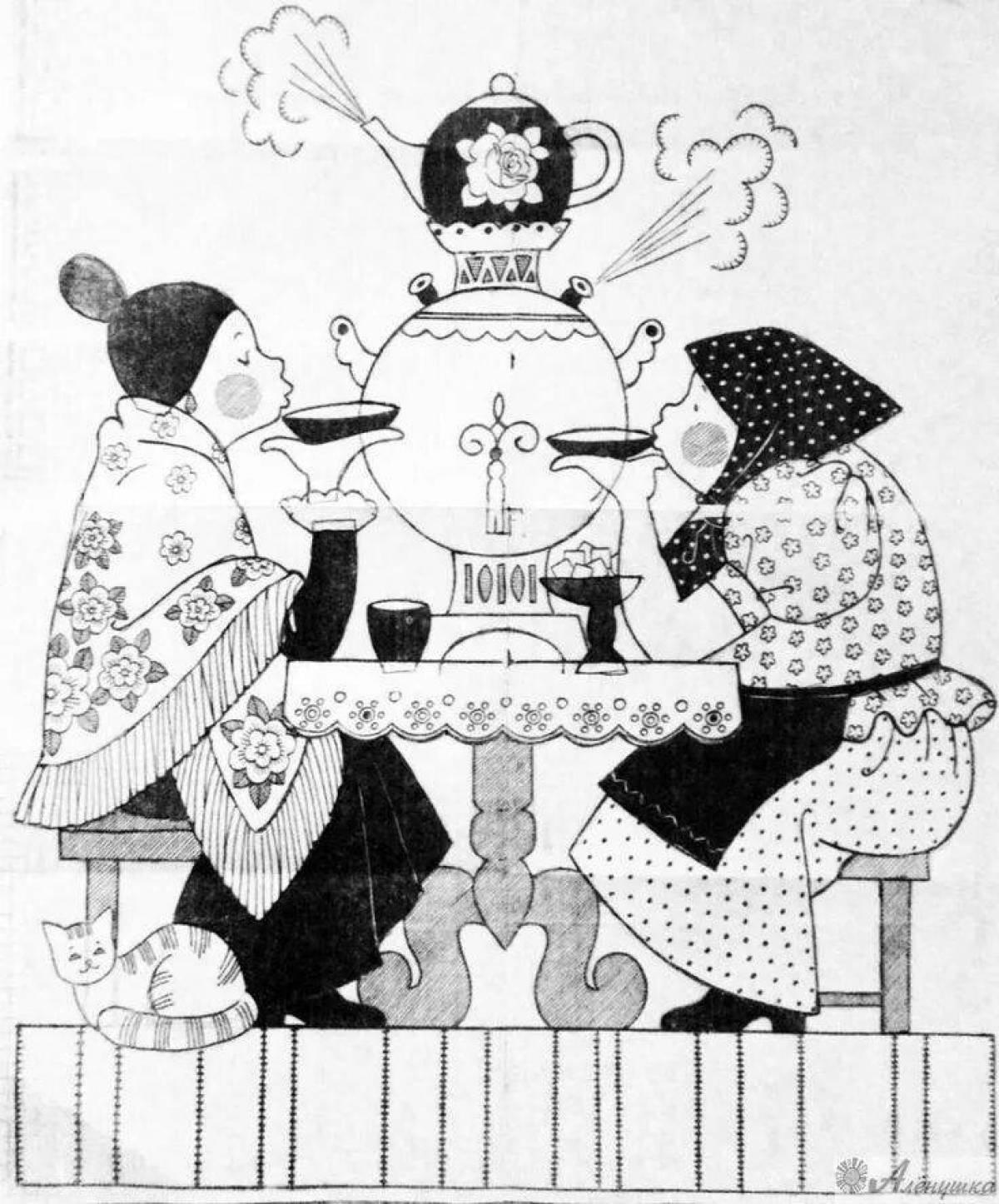 чаепитие раскраска