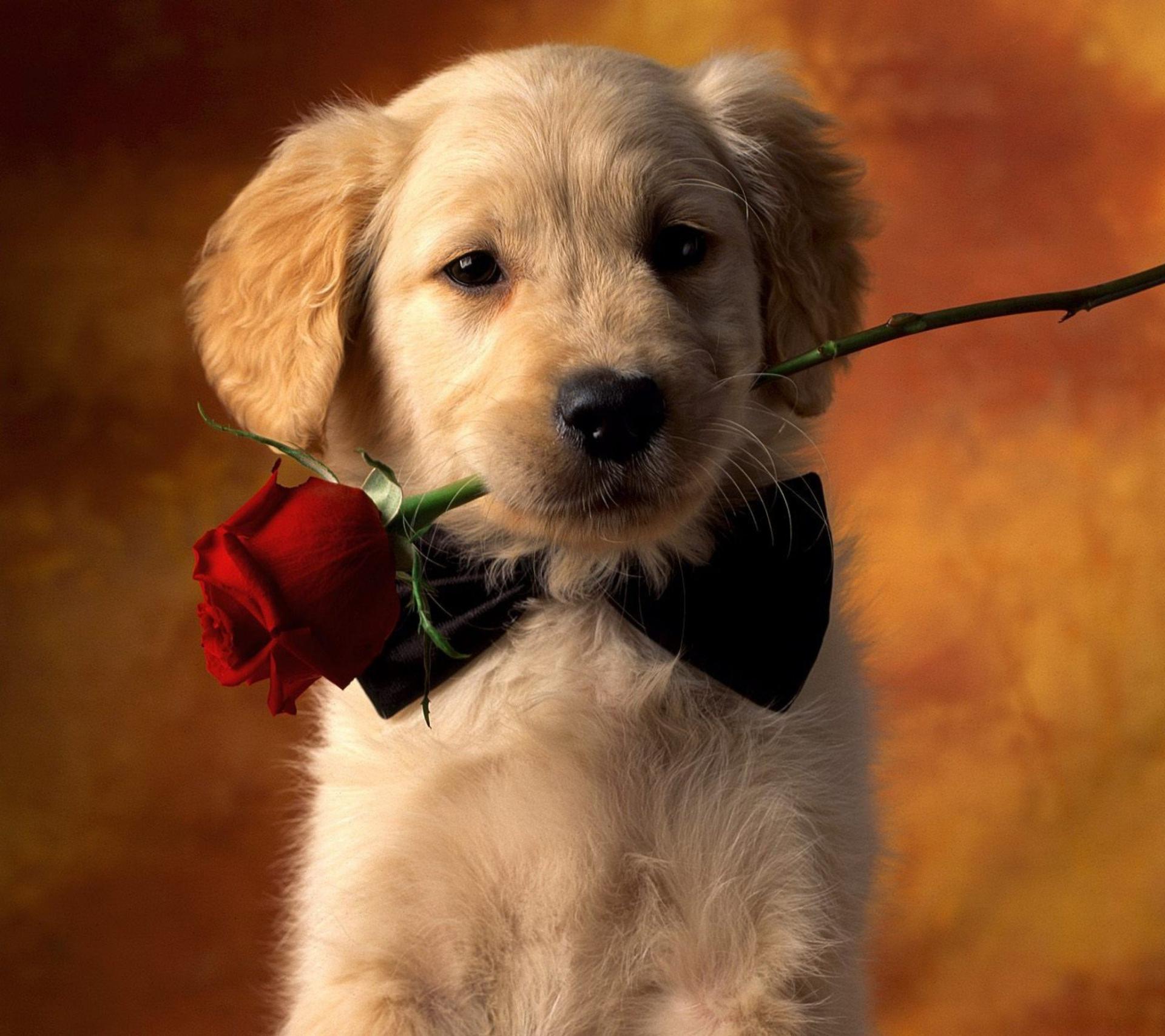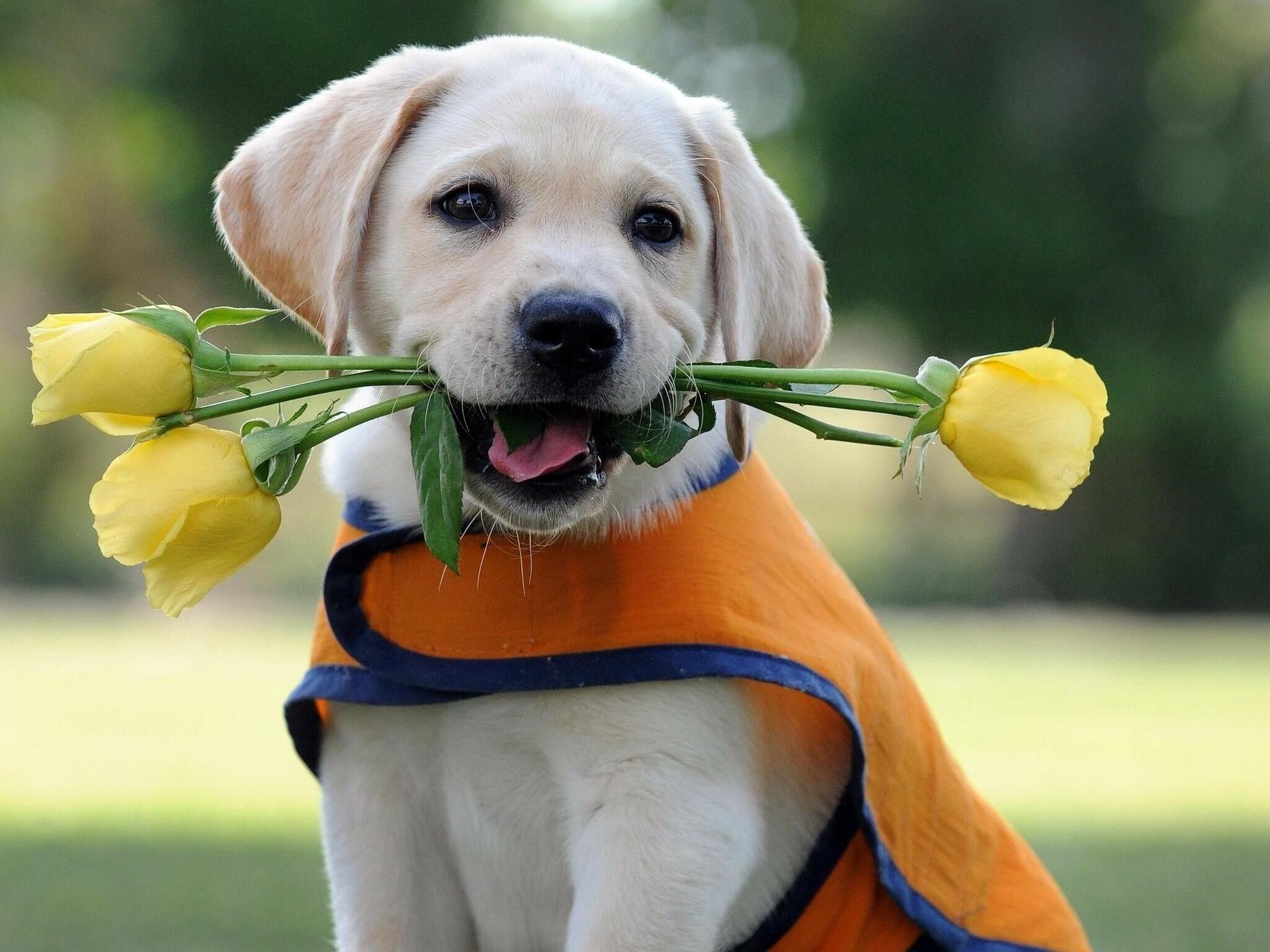 щенок с цветами