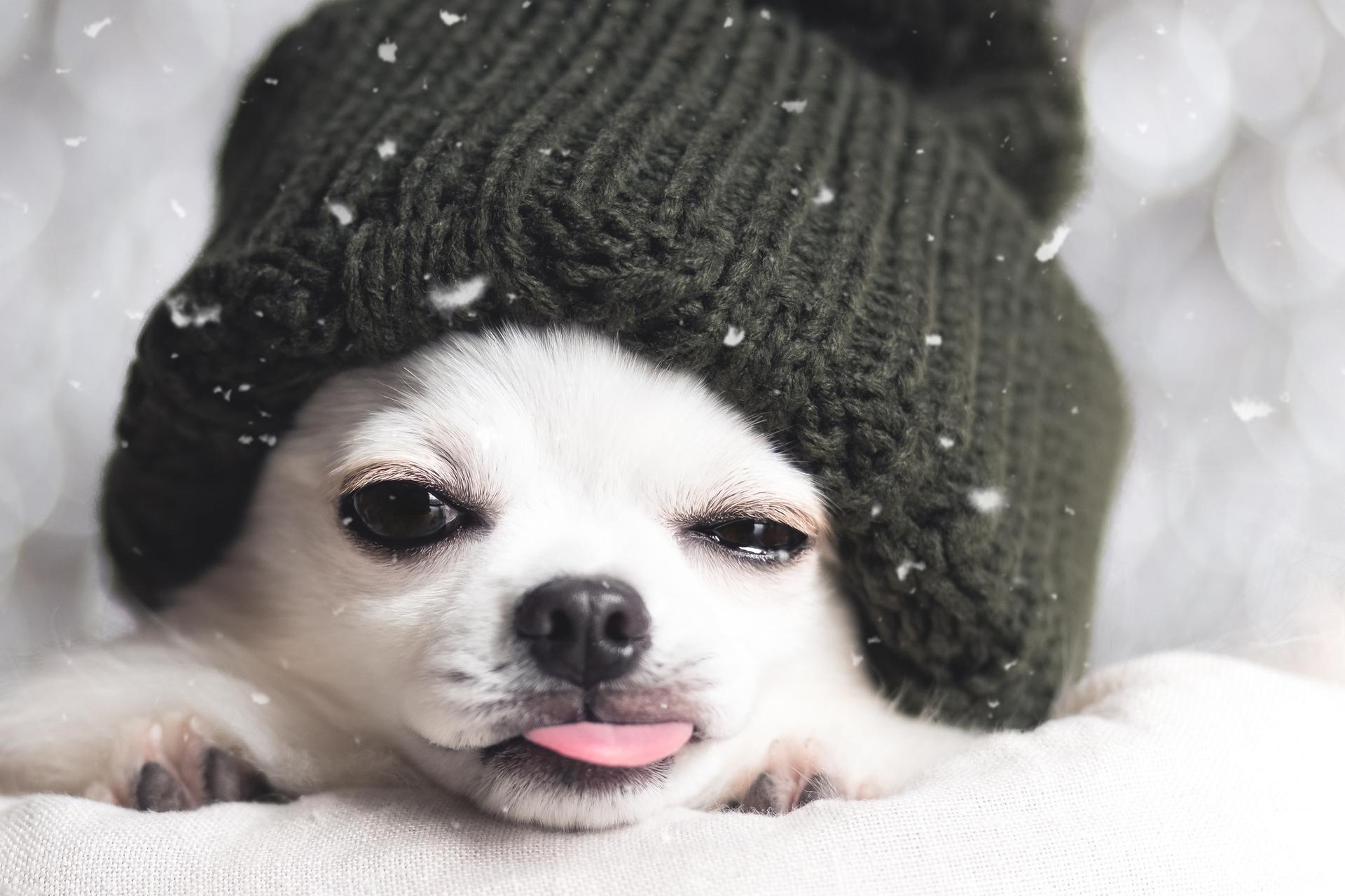вязаная шапка собака