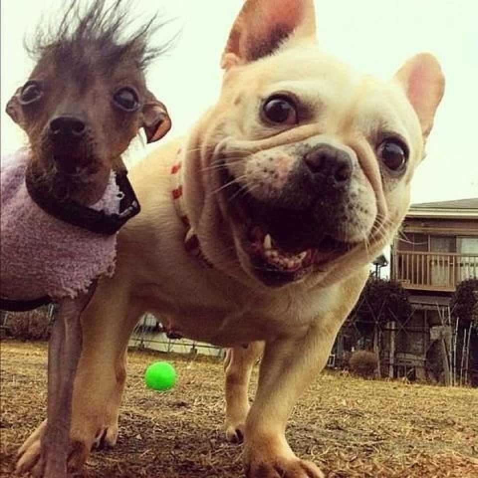 китайская хохлатая и мопс