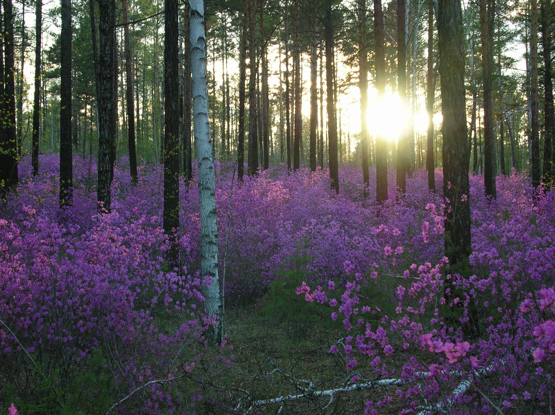 лес забайкалья багульник