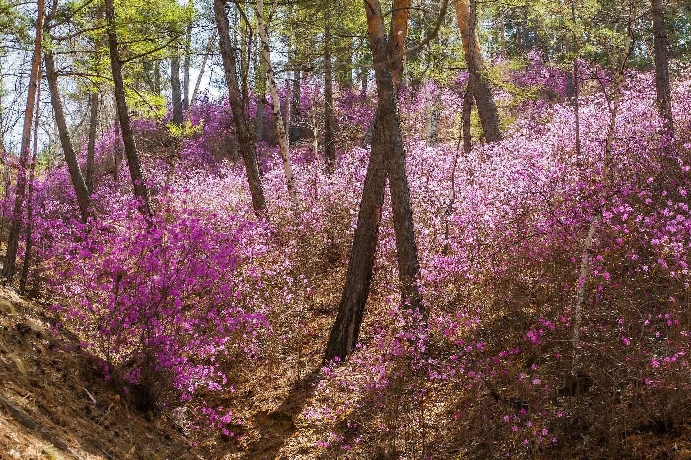 цветение багульника в забайкалье