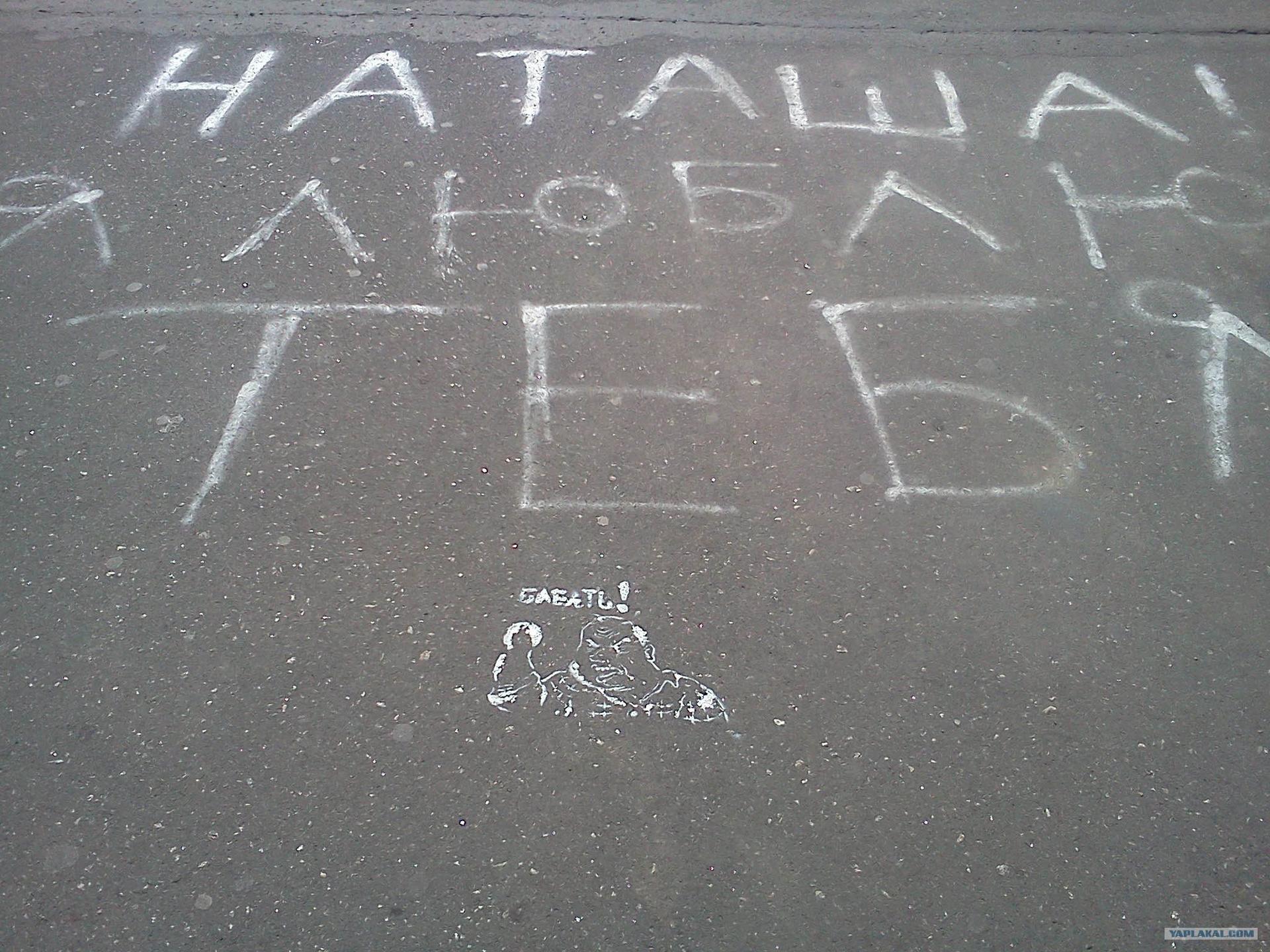 надписи на асфальте