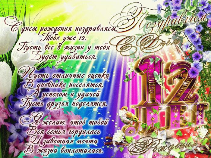 поздравление днём рождения девочке 12 лет