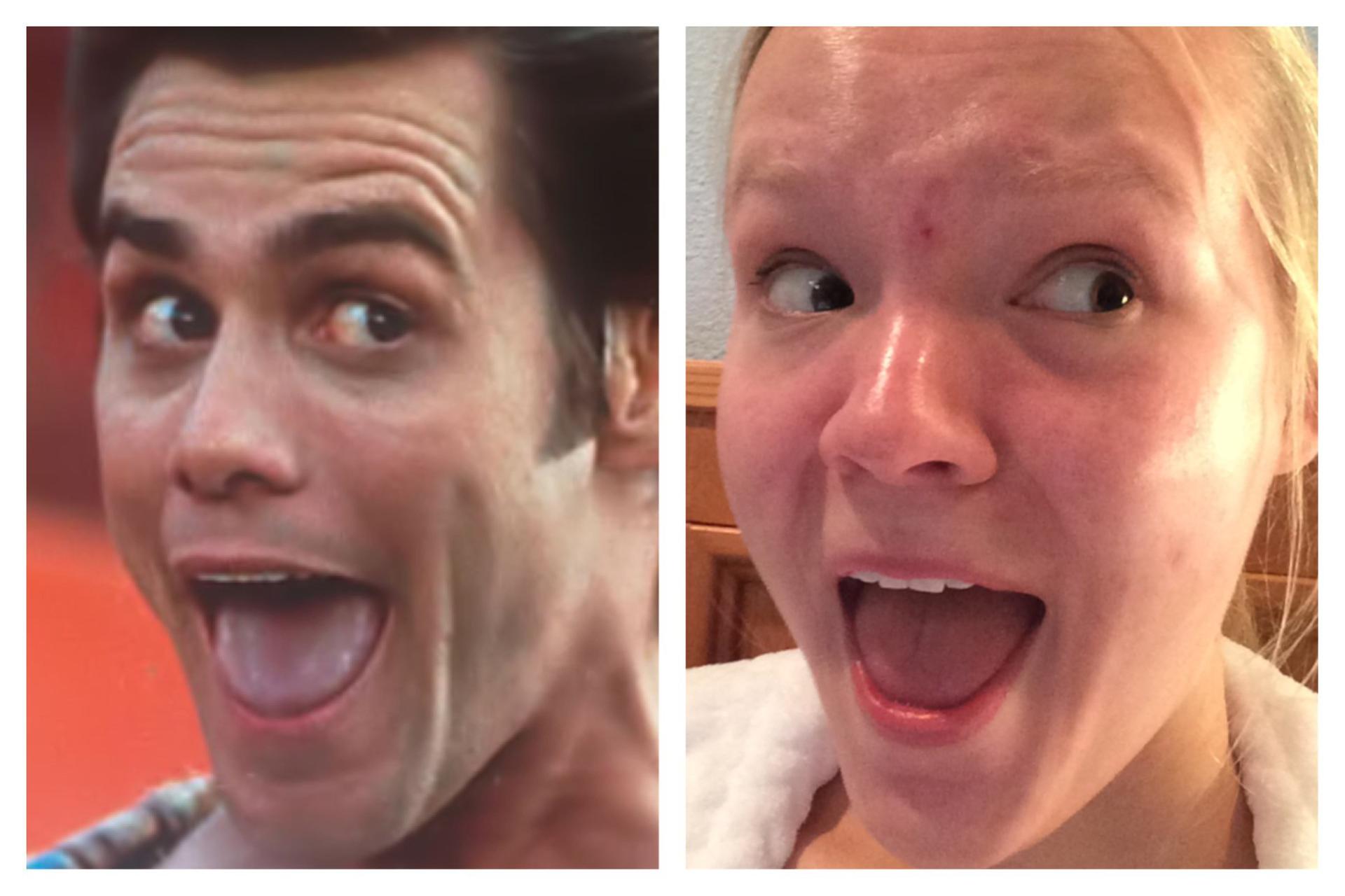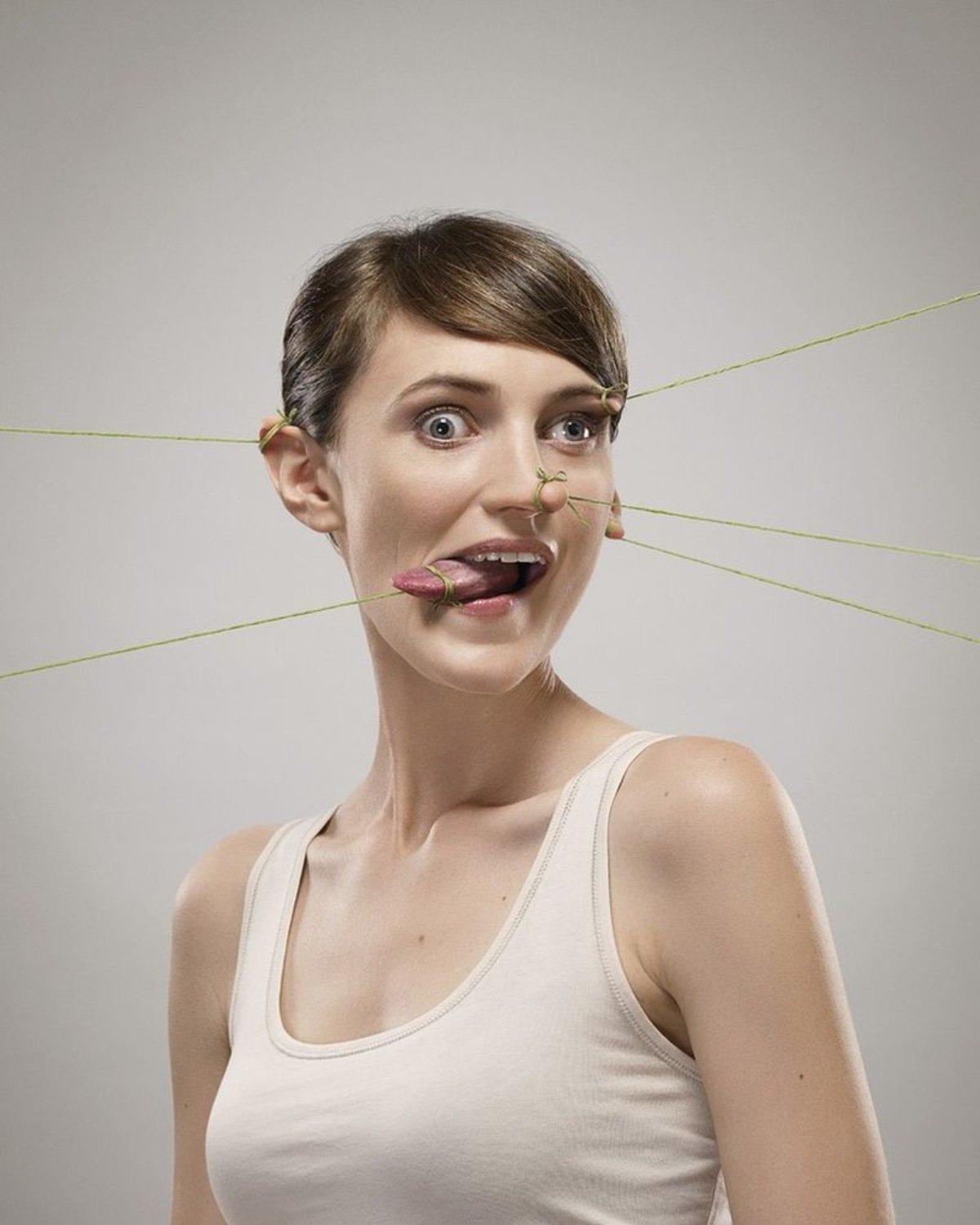 девушка кривляется лицом