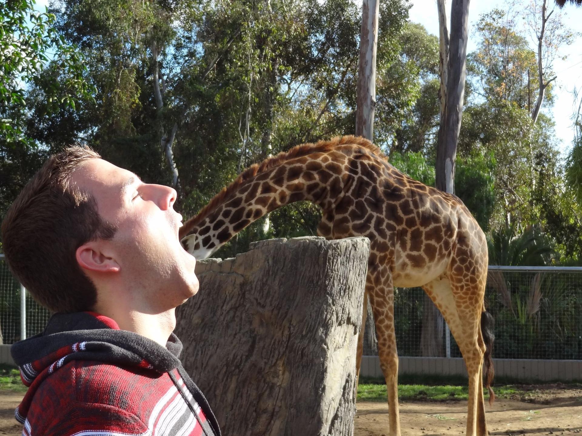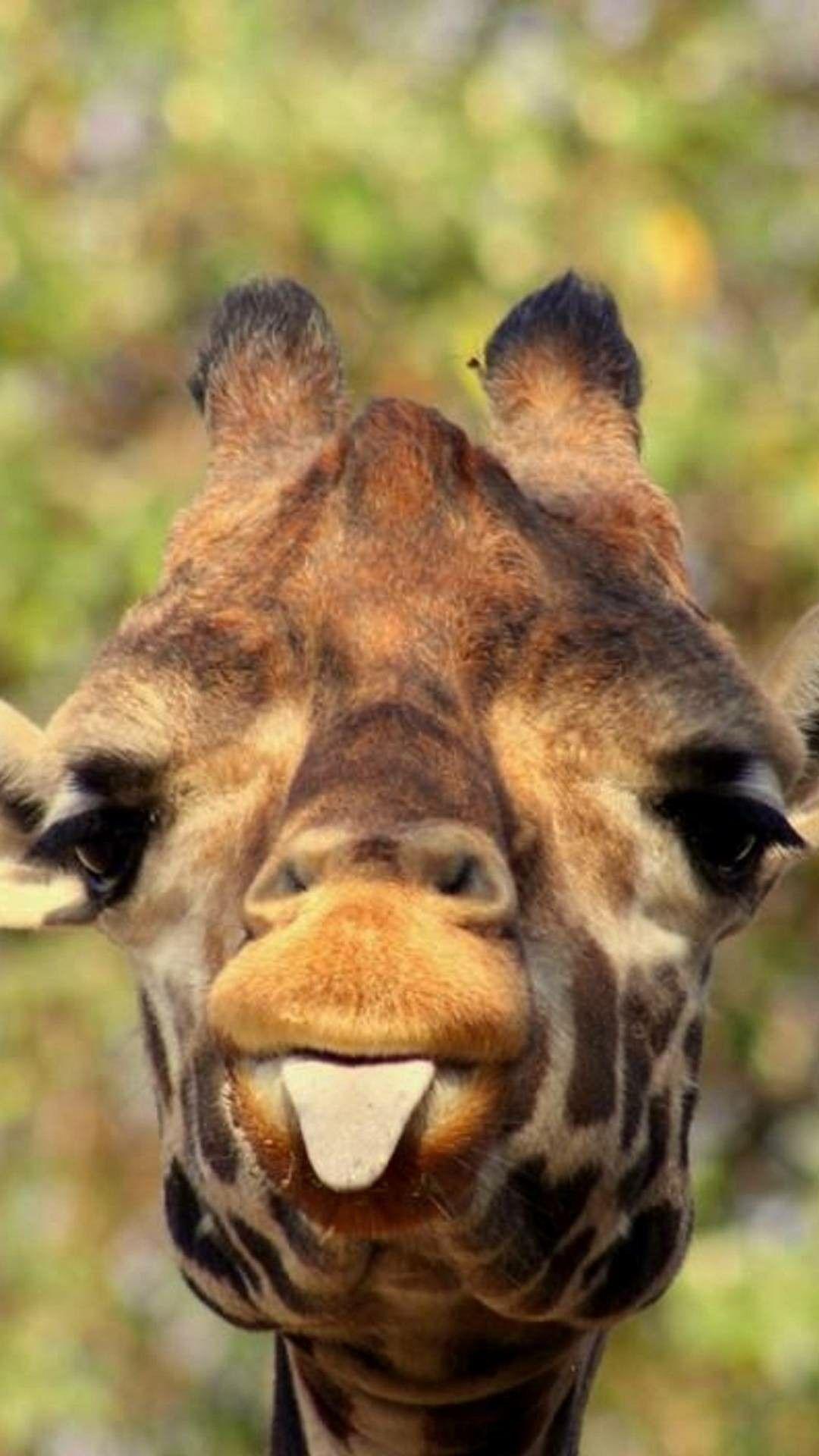 жираф показывает язык