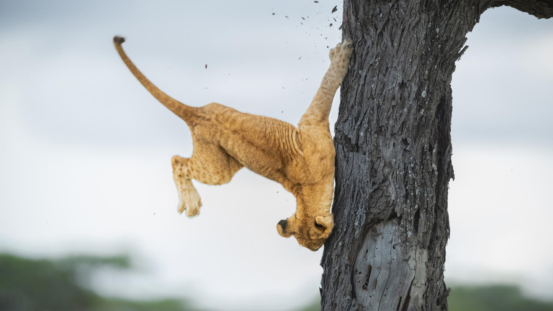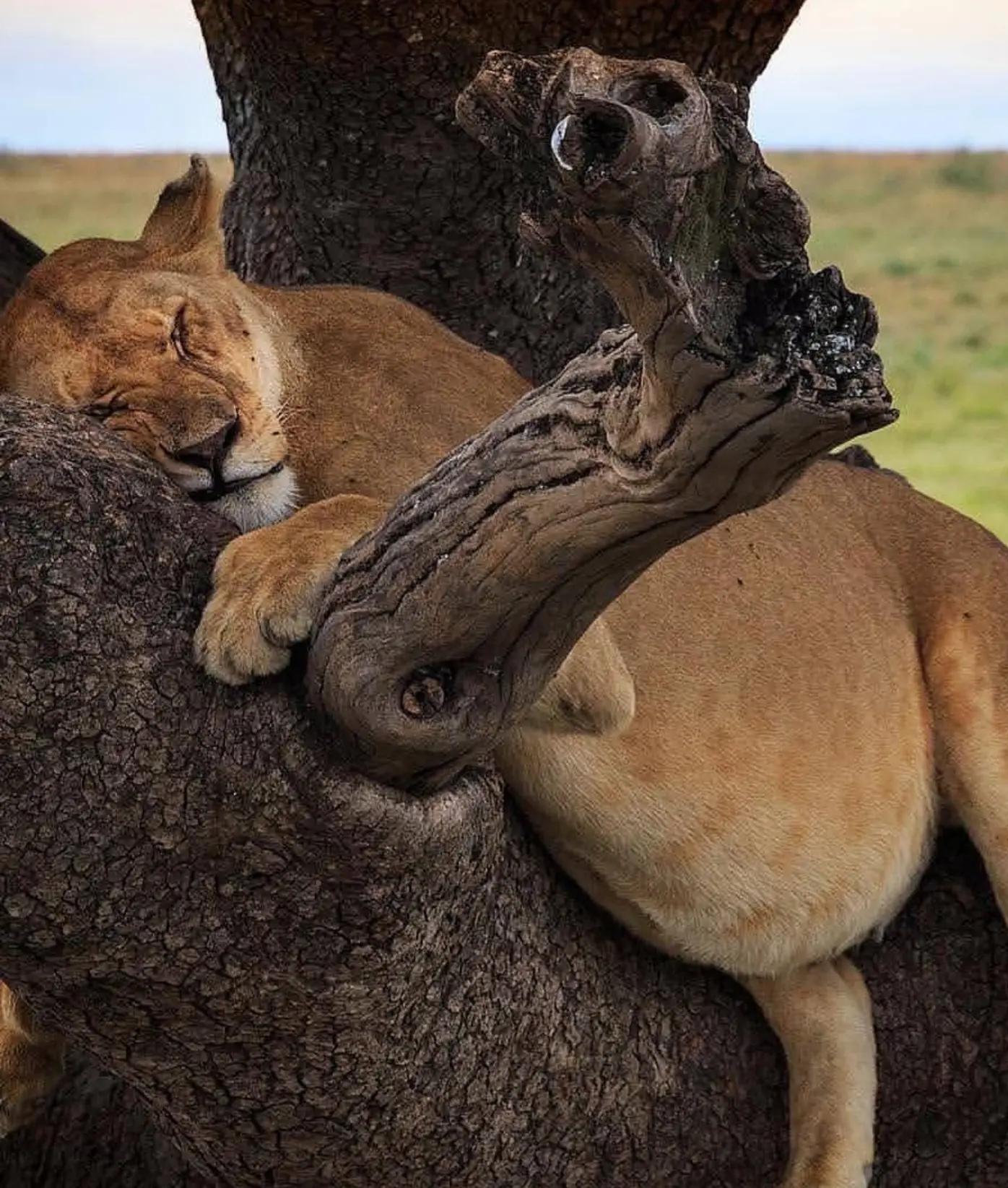 львы лазают по деревьям