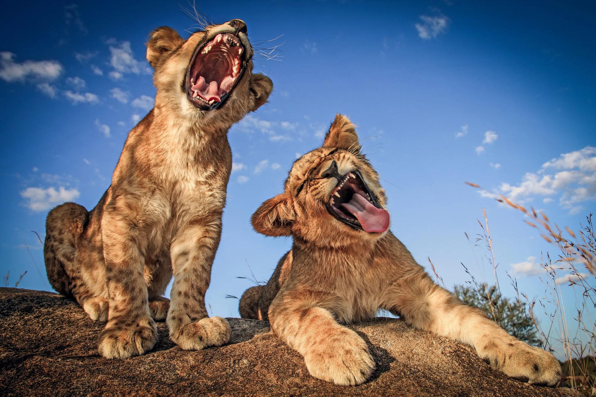 львенок зевает
