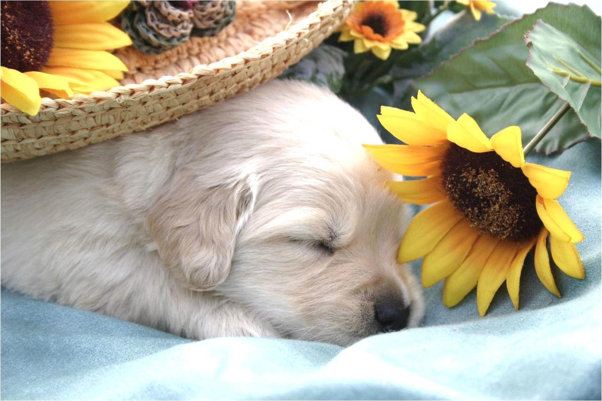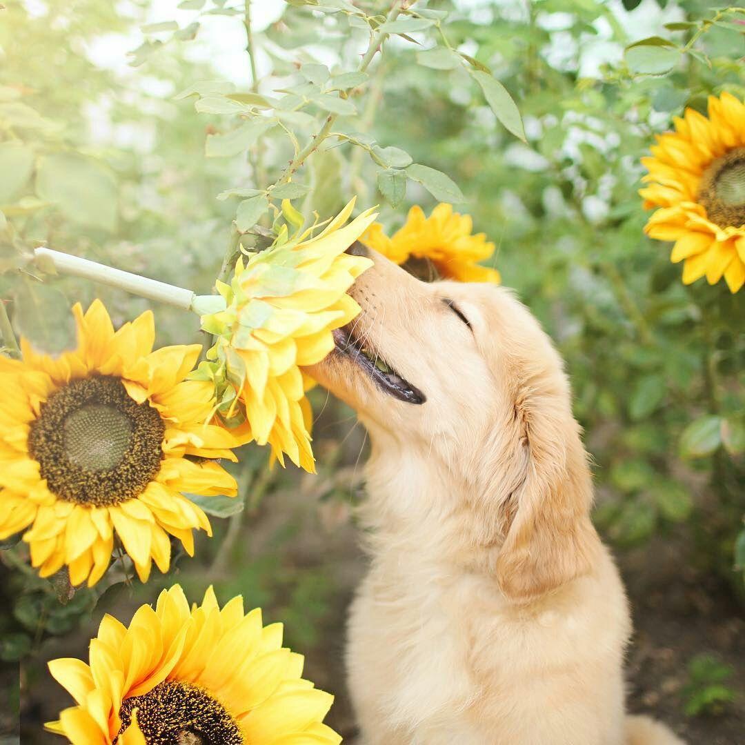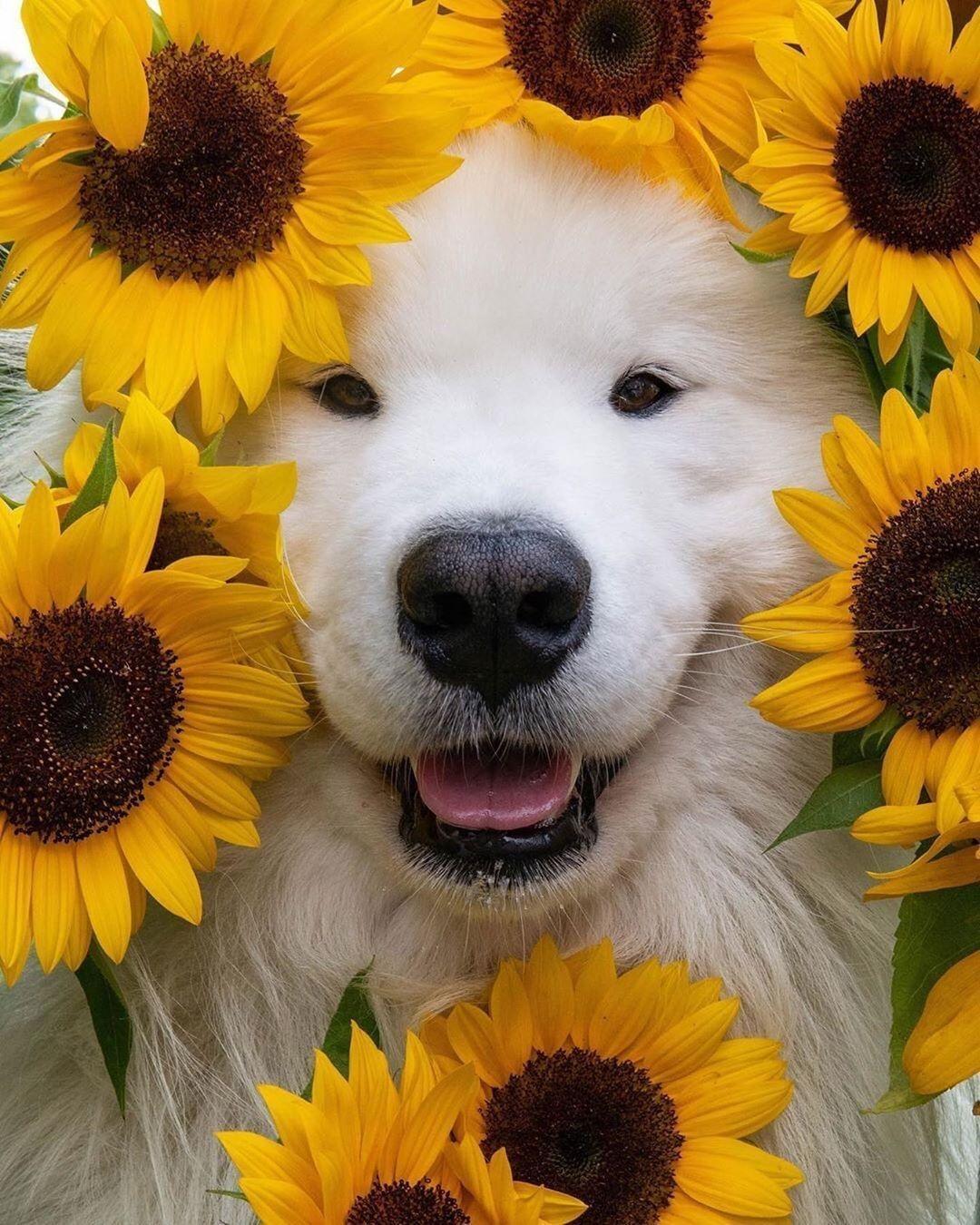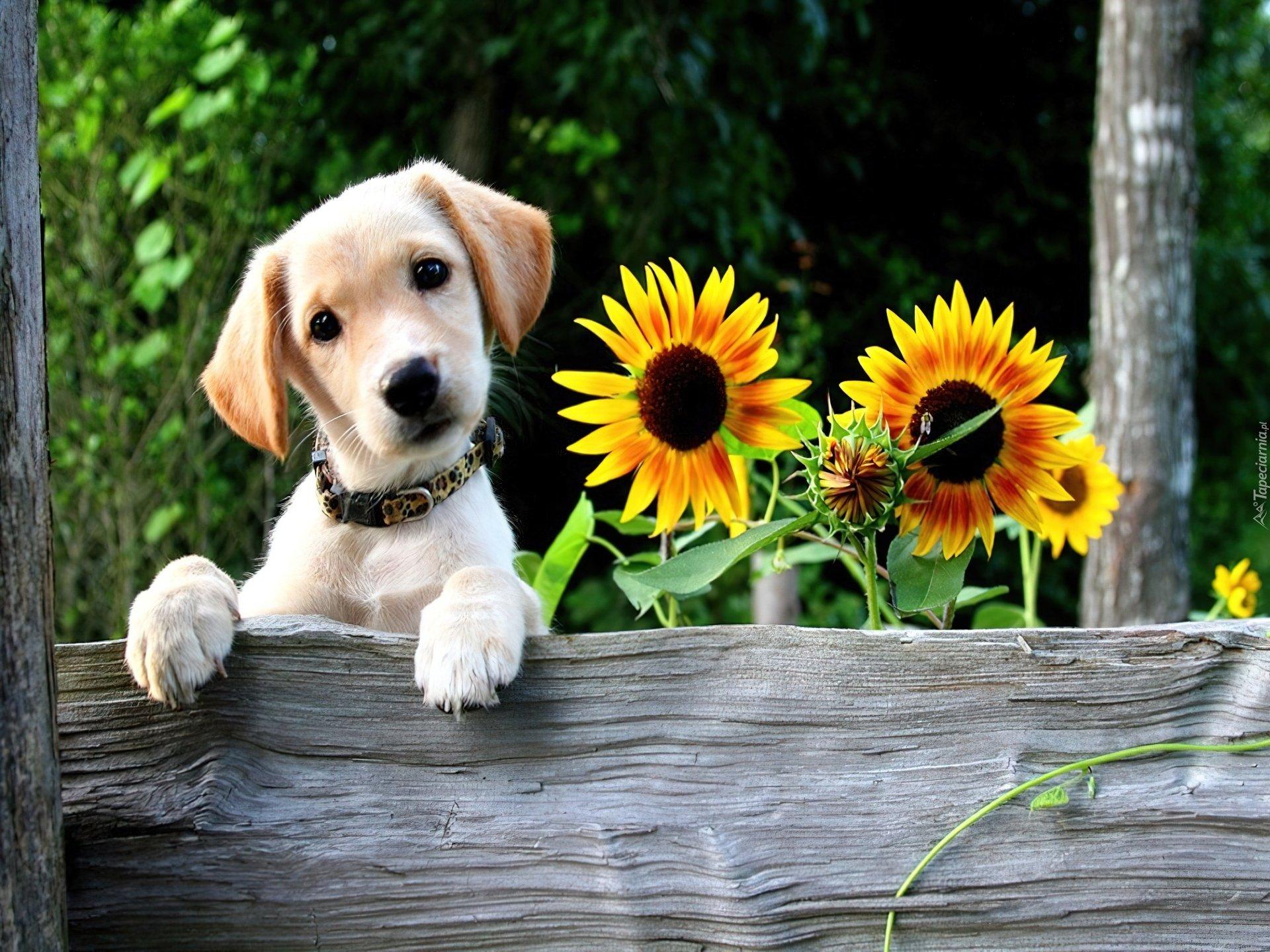 щенок в подсолнухах