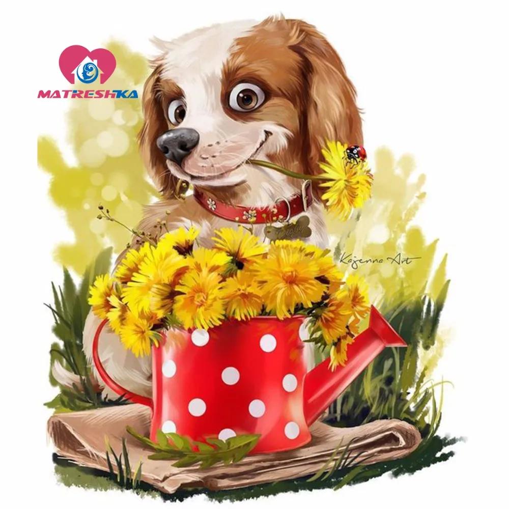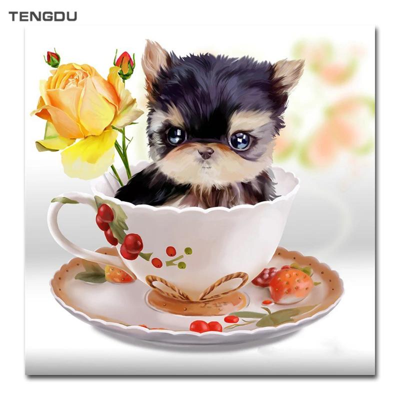 алмазная мозаика собака в чашке