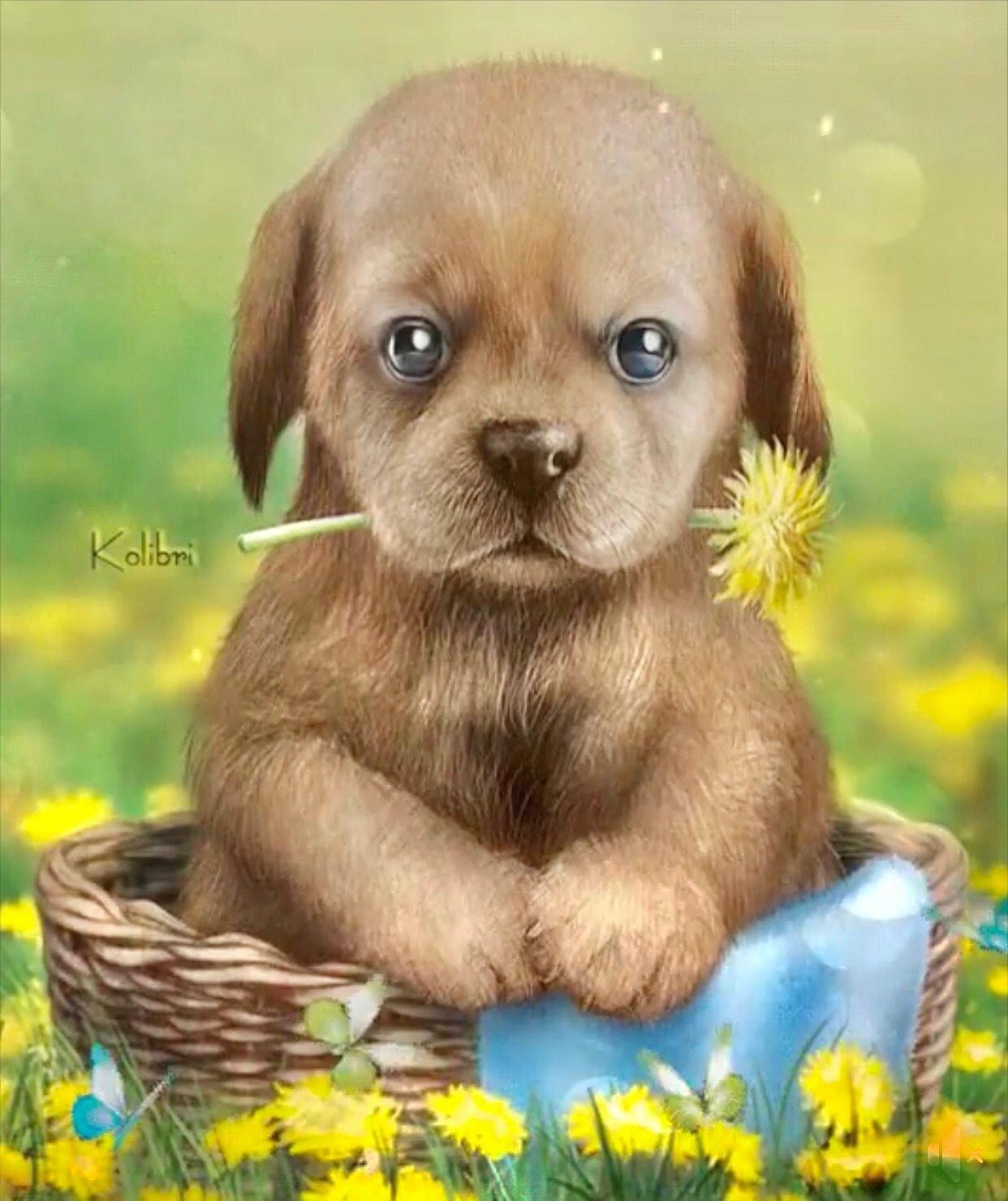 открытка хорошего дня с собачкой