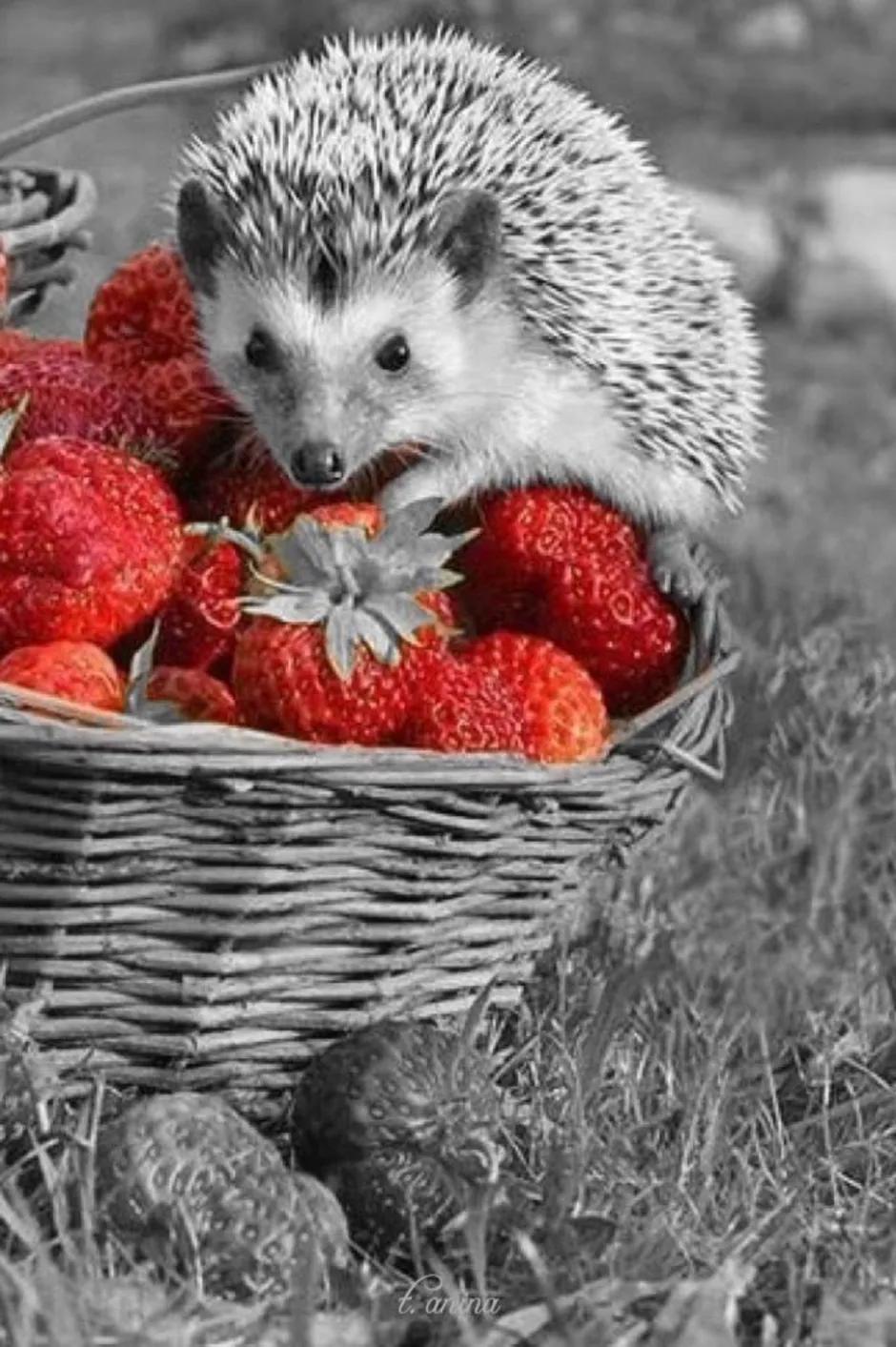 ежик ест клубнику