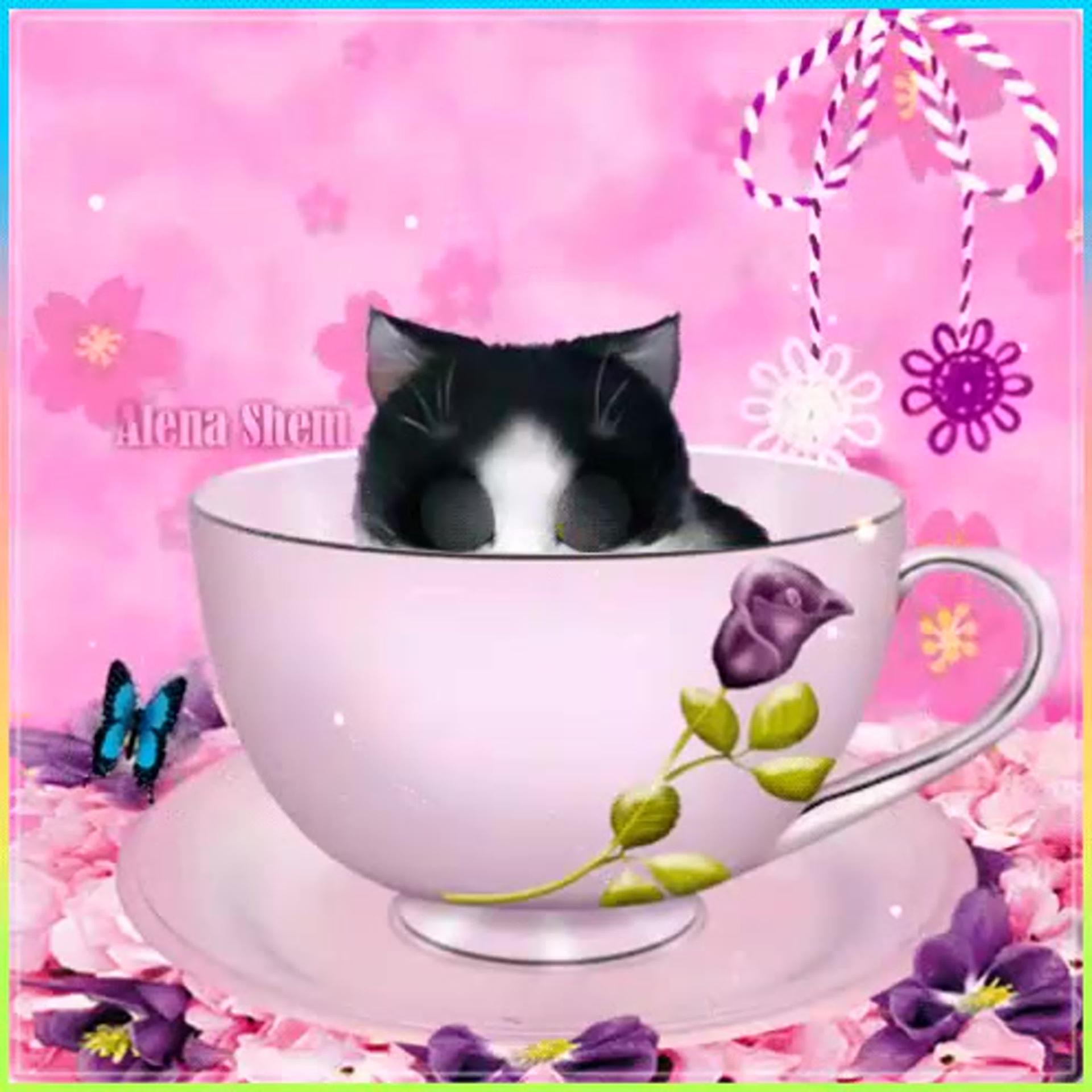 милые котики в чашке