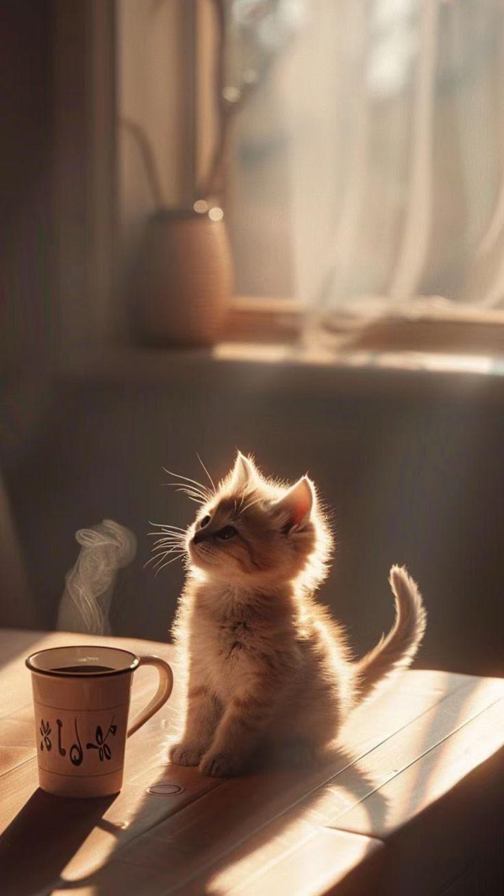котенок в чашке