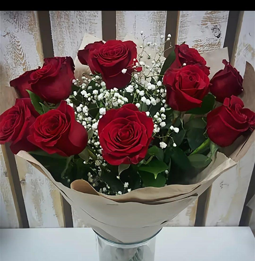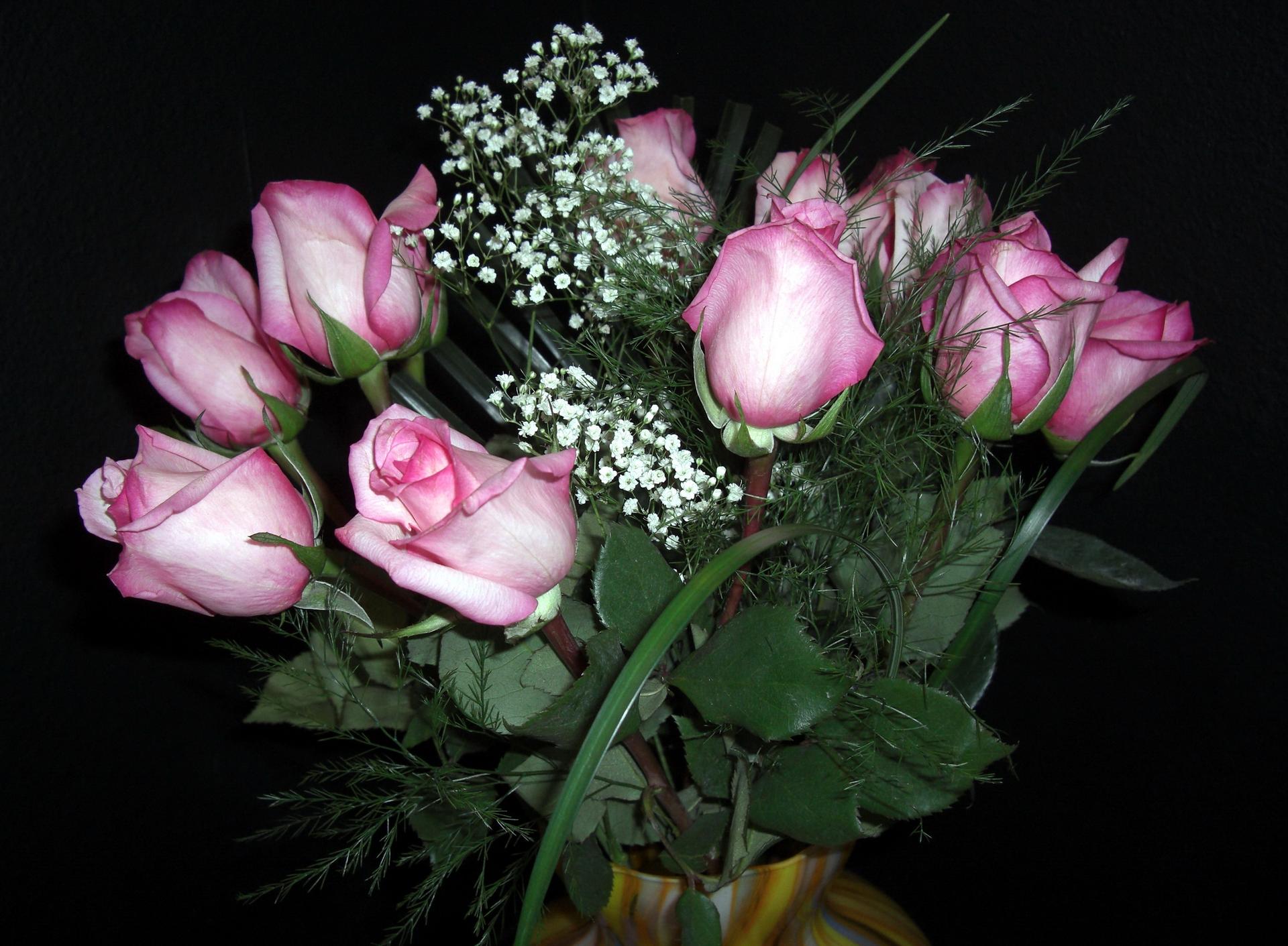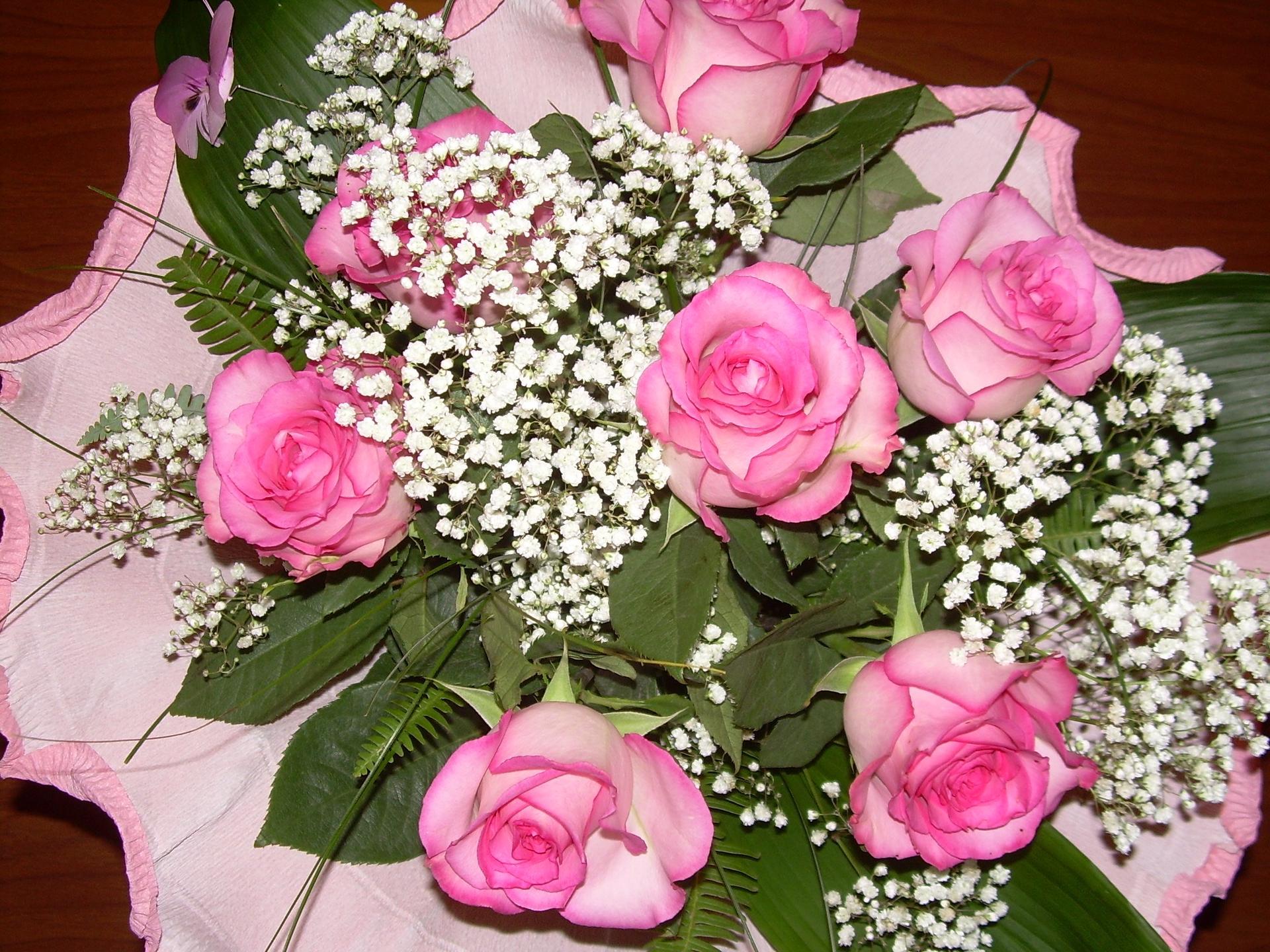 букет роз с гипсофилой