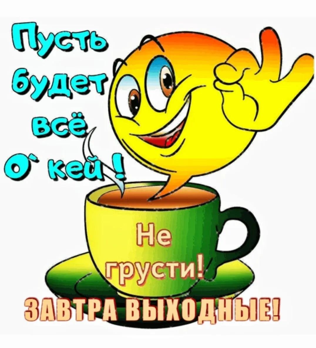смайлик пьет чай