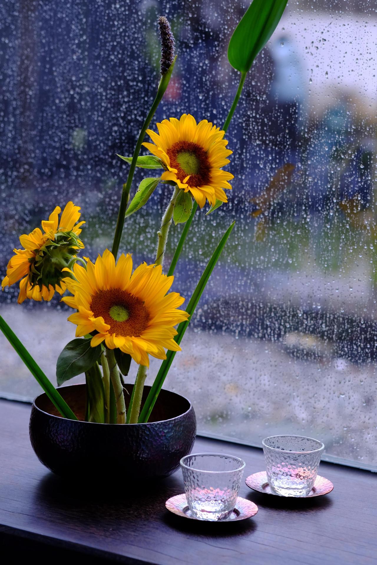 подсолнухи в дождь