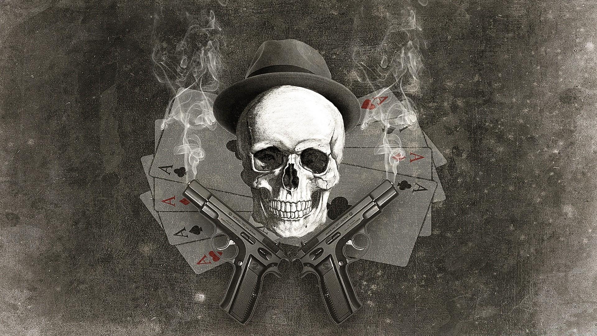 скелет с пистолетами