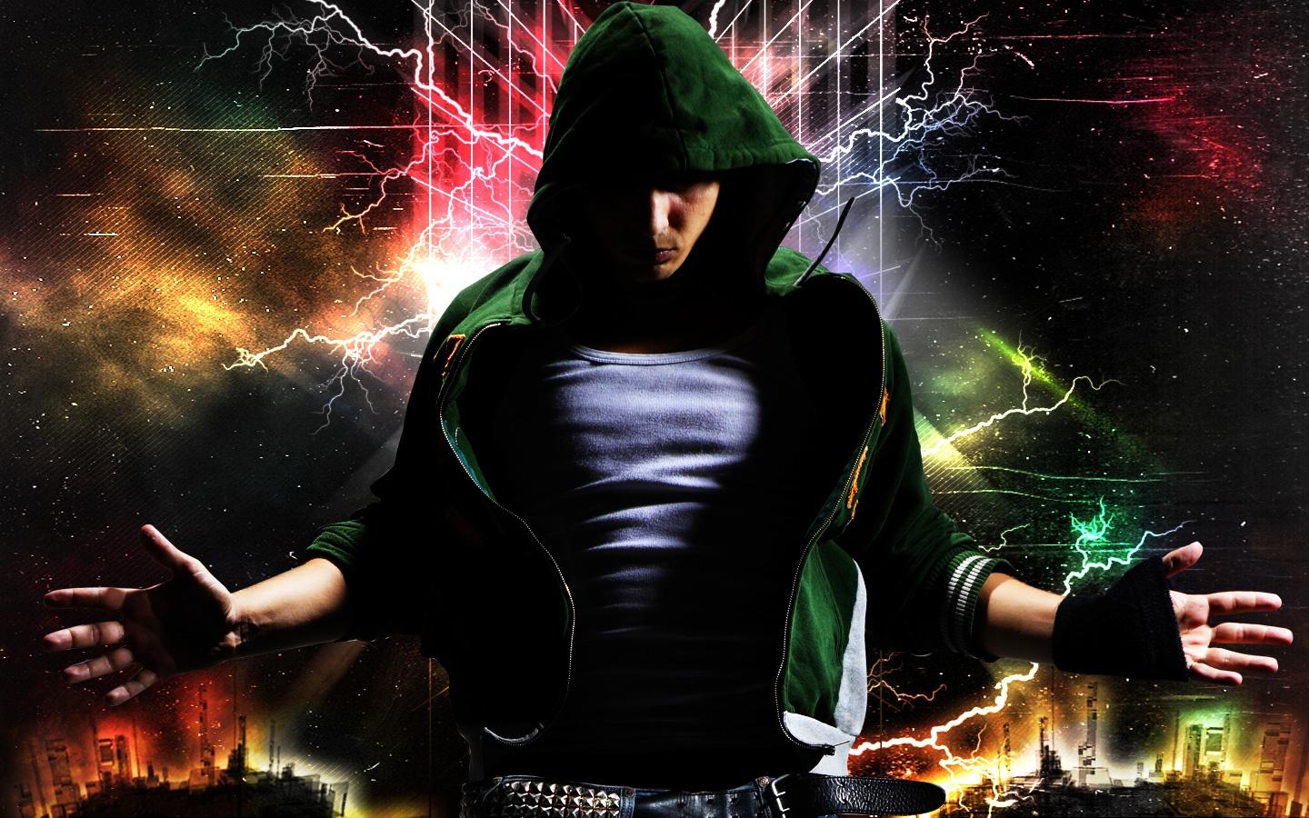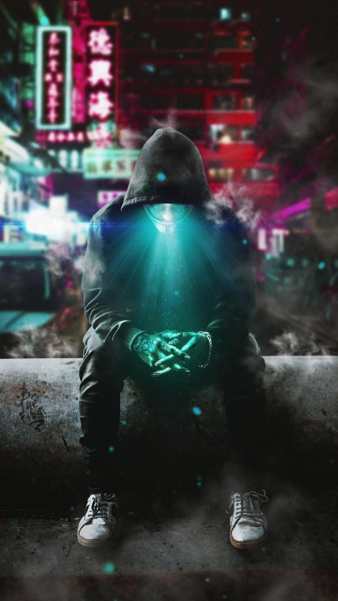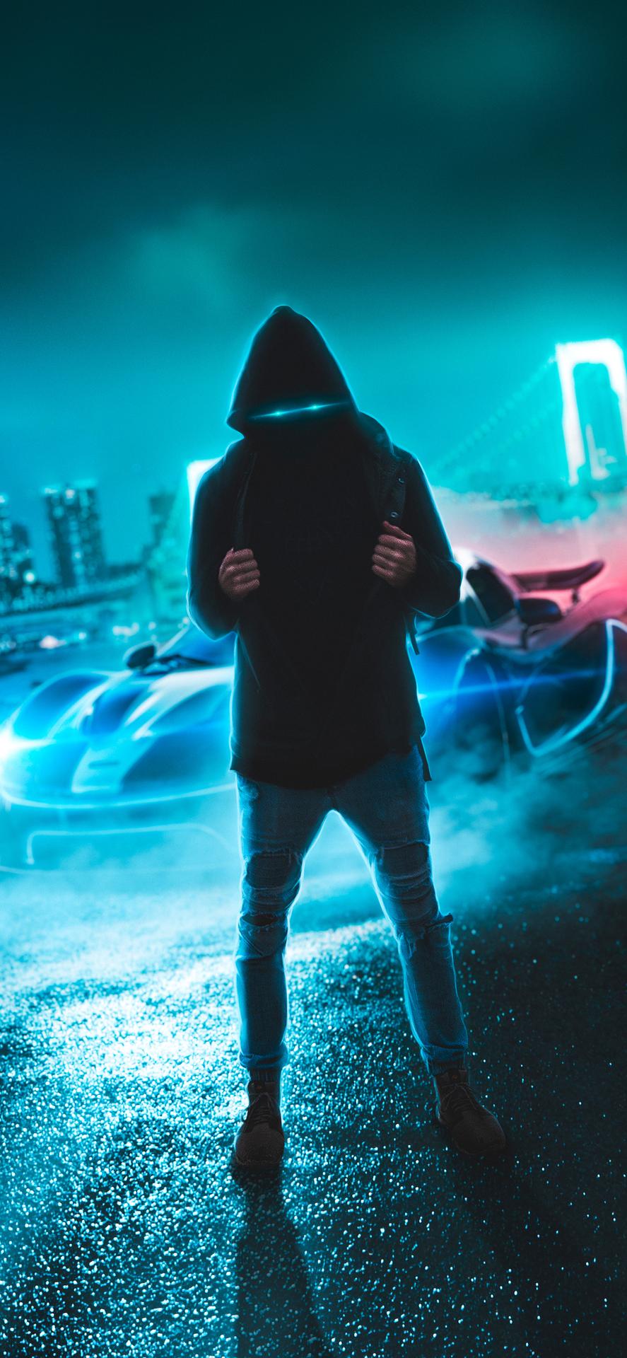 в капюшоне неон