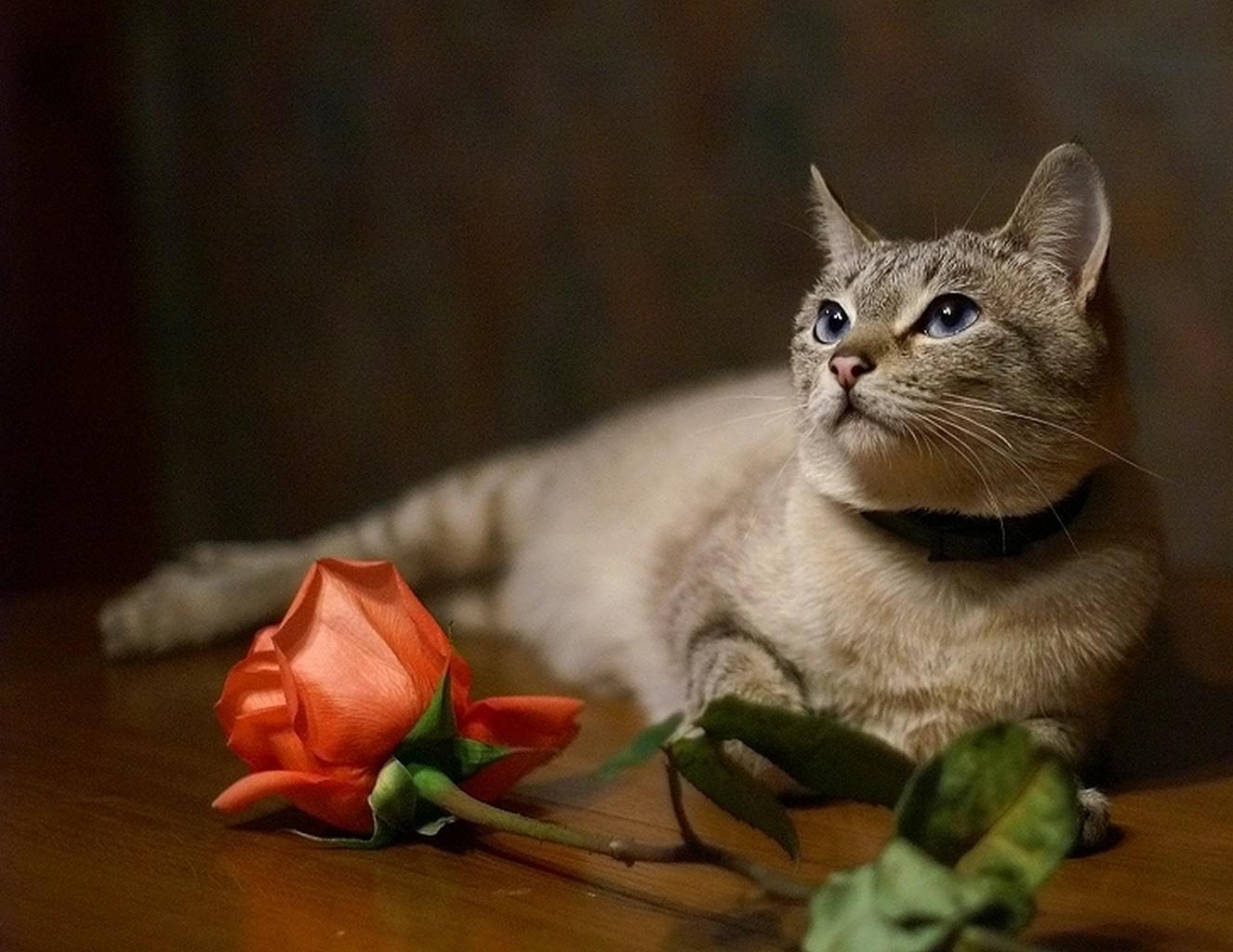 рыжий котик и цветок