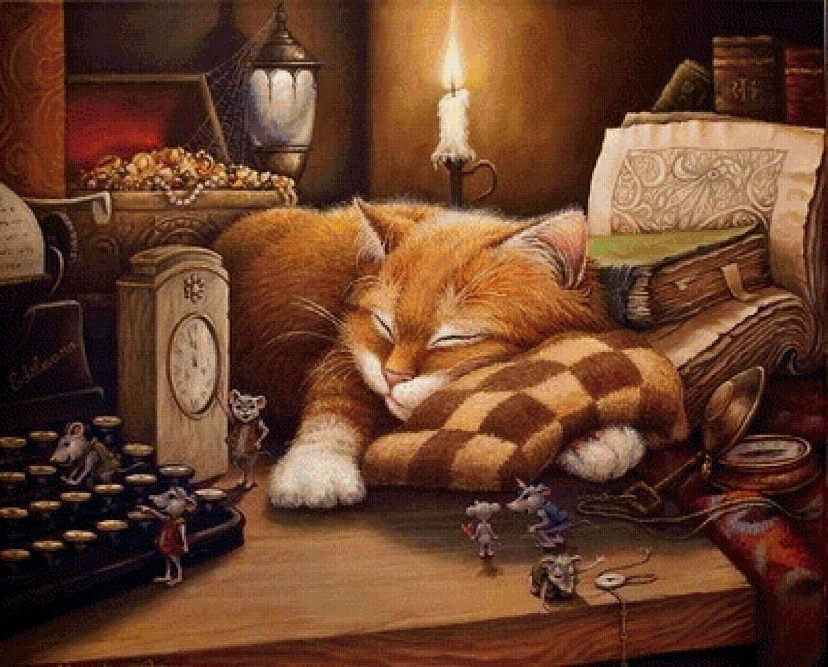 кот у камина