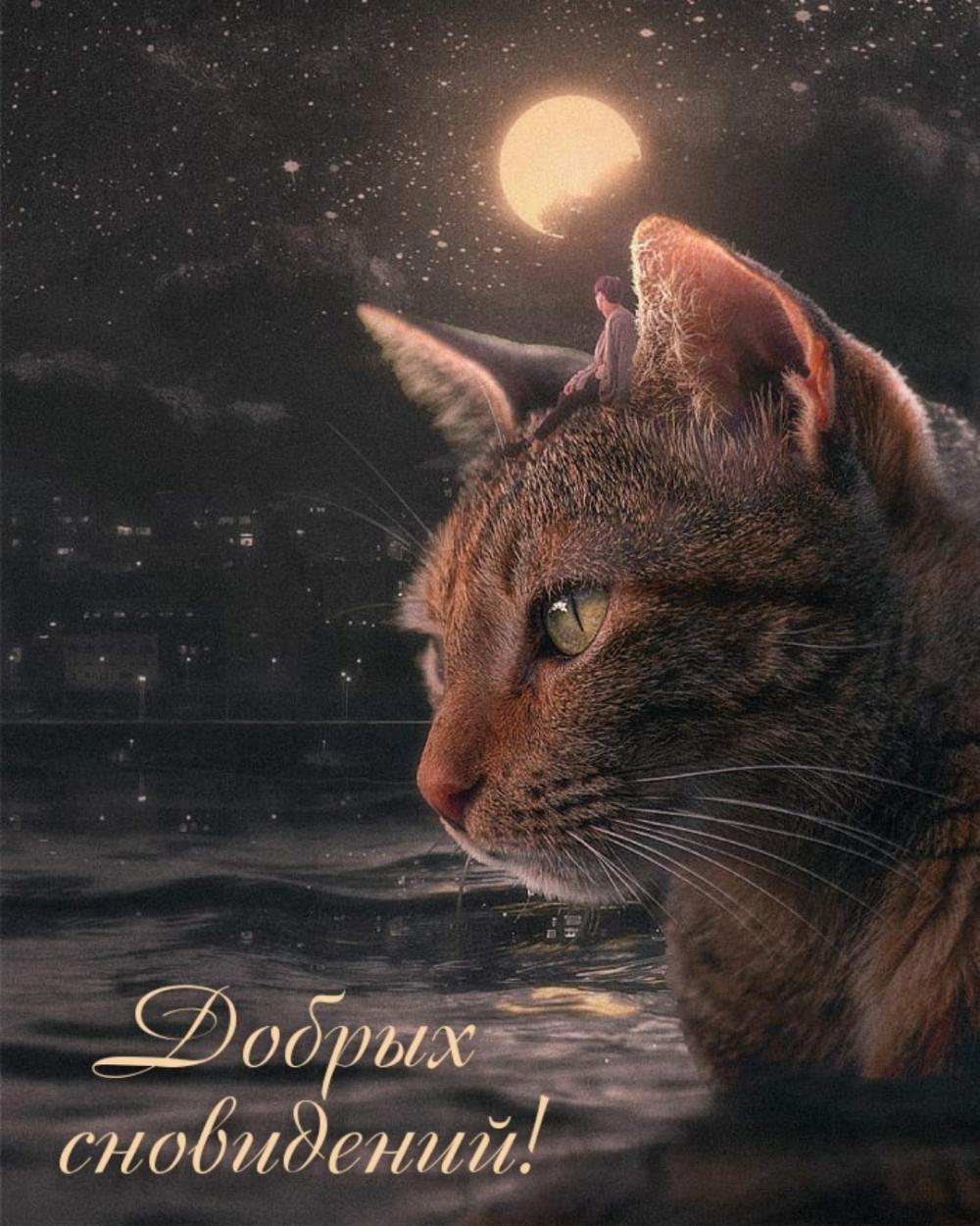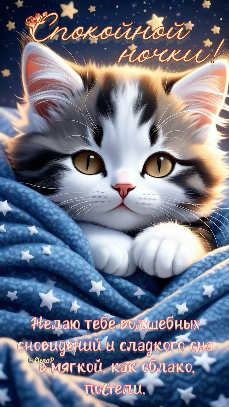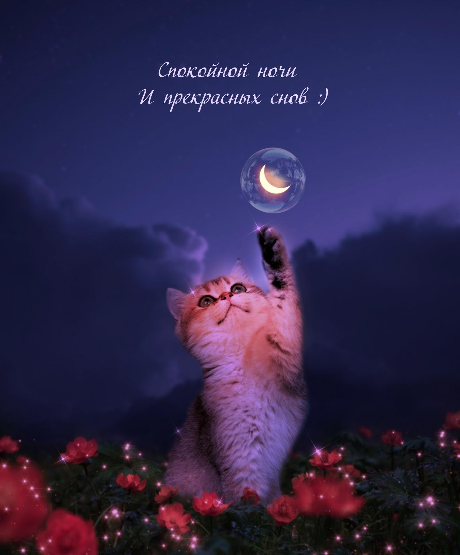сладких снов с котом прикольные