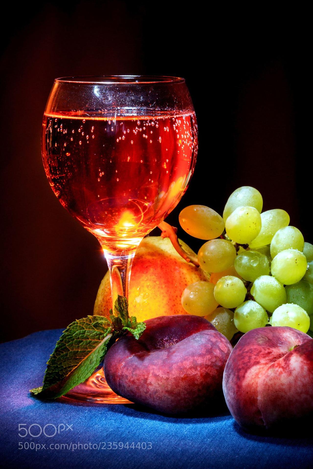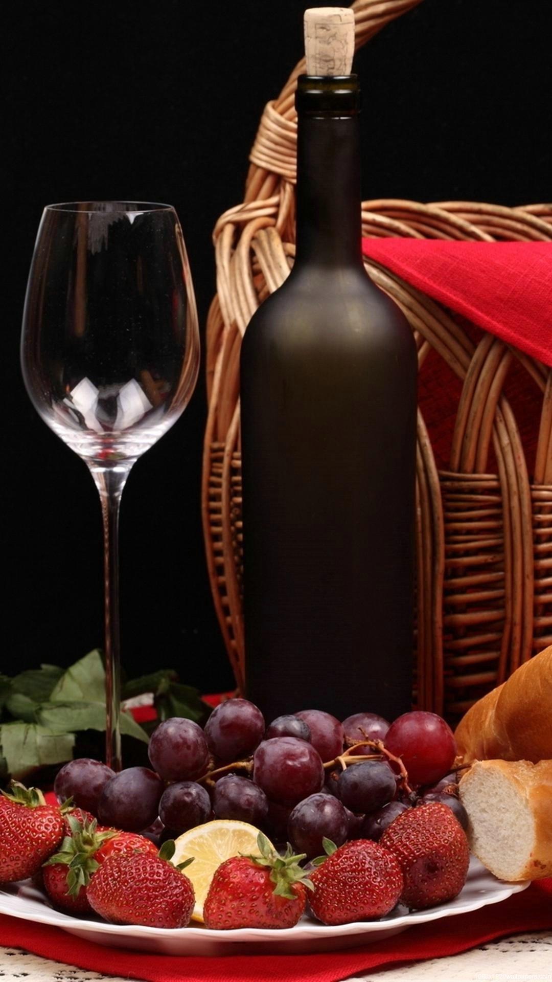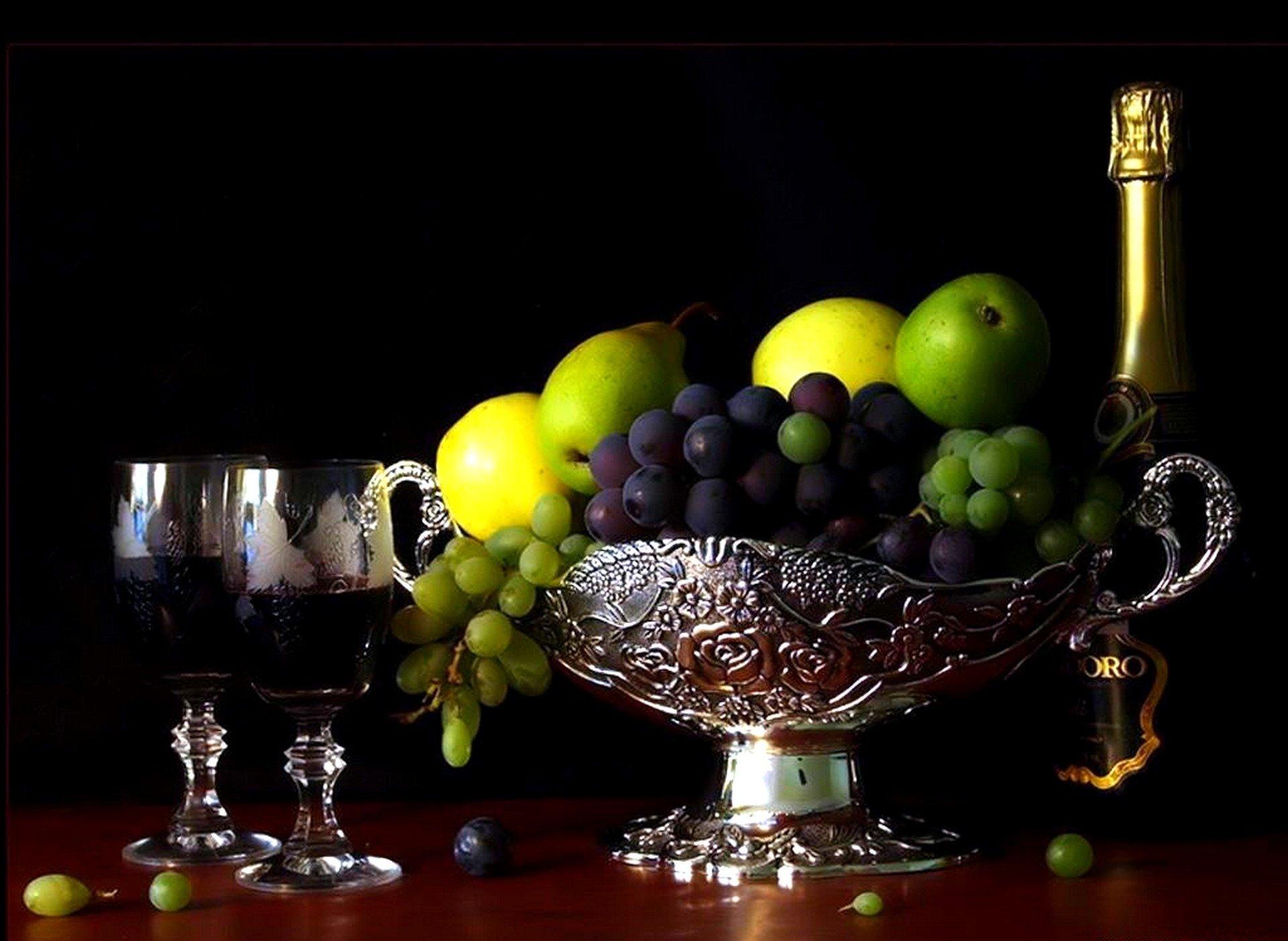 бокал вина и фрукты