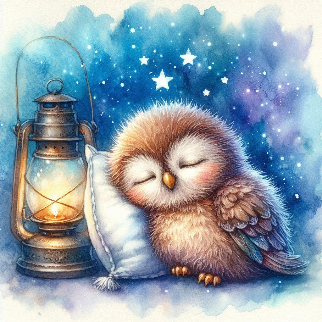 сова акварель