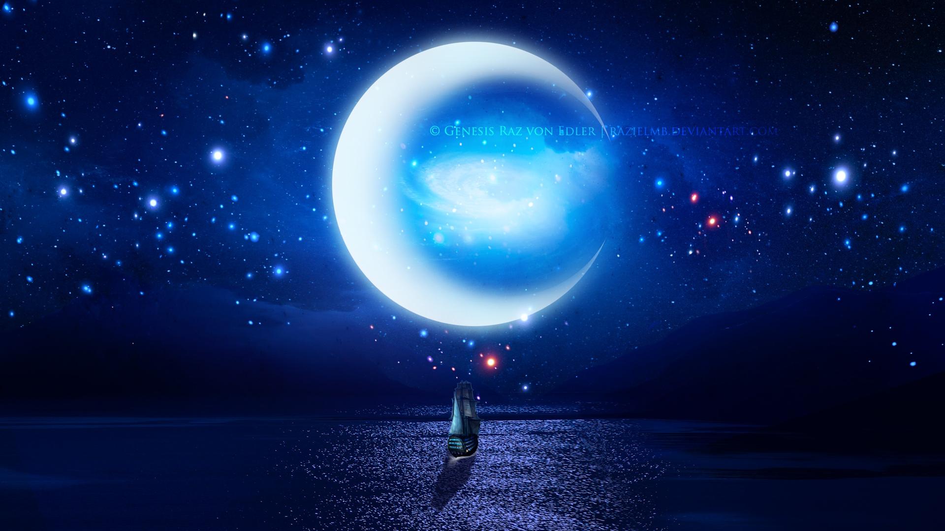 moon night sea