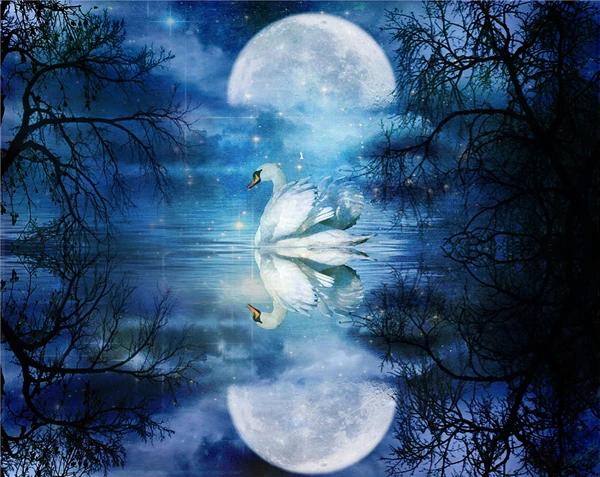 лебедь ночью