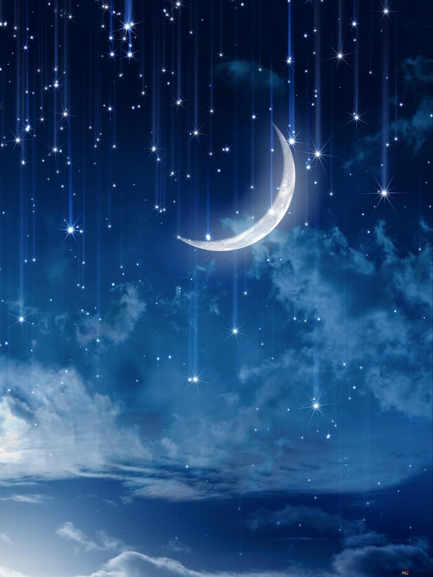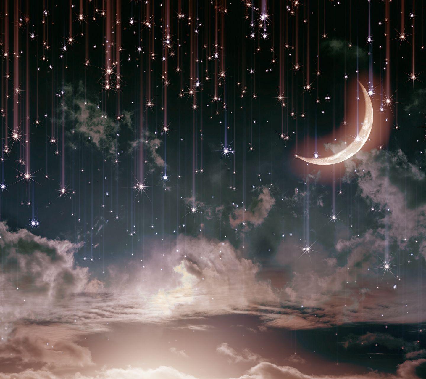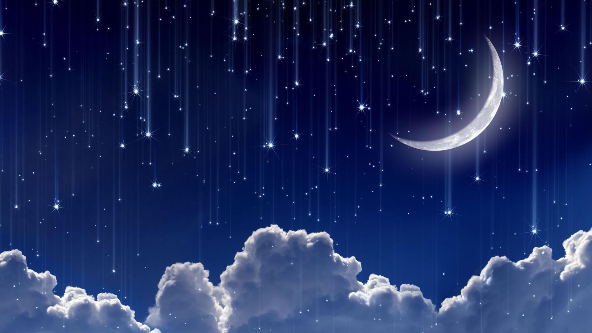 звездное небо с месяцем