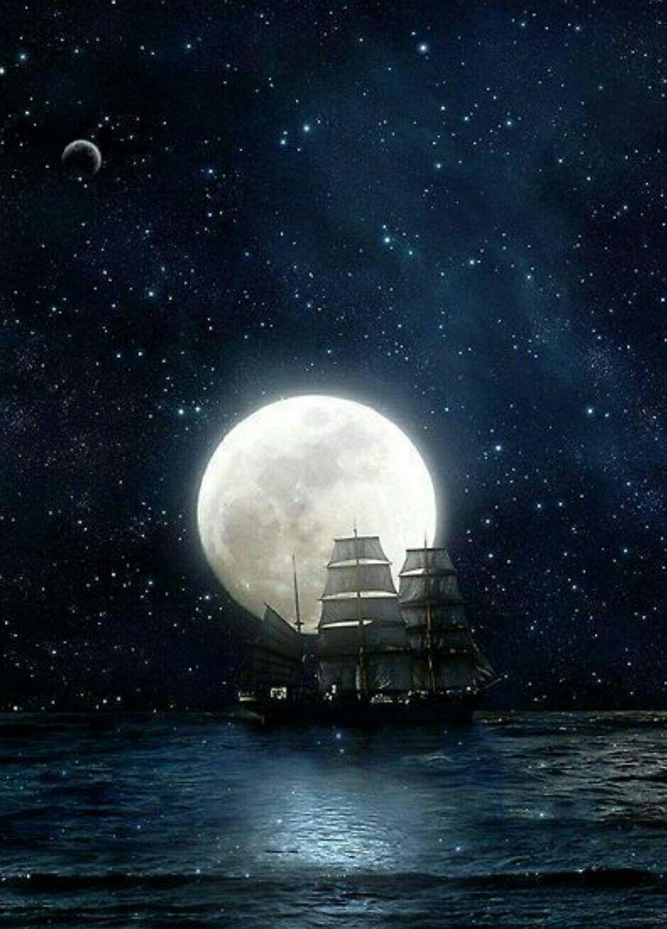 корабль в лунном свете