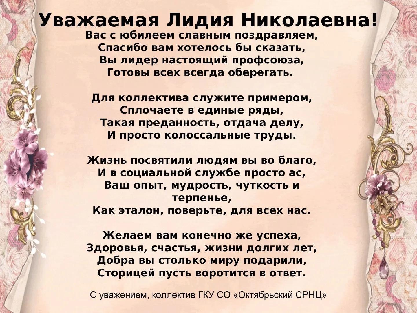 поздравление с юбилеем лидии