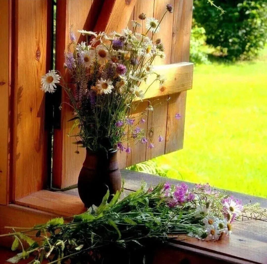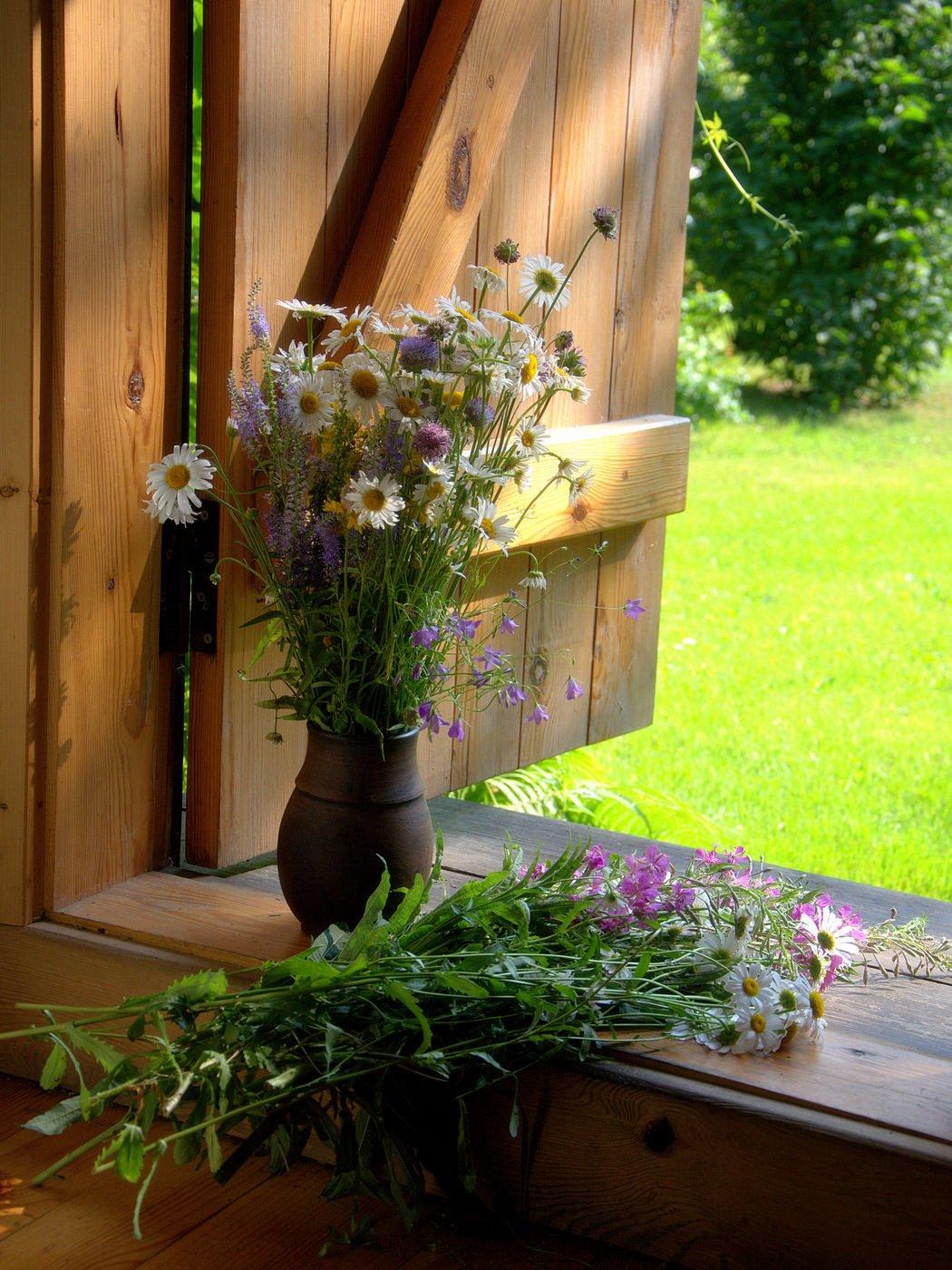 полевые цветы на окне