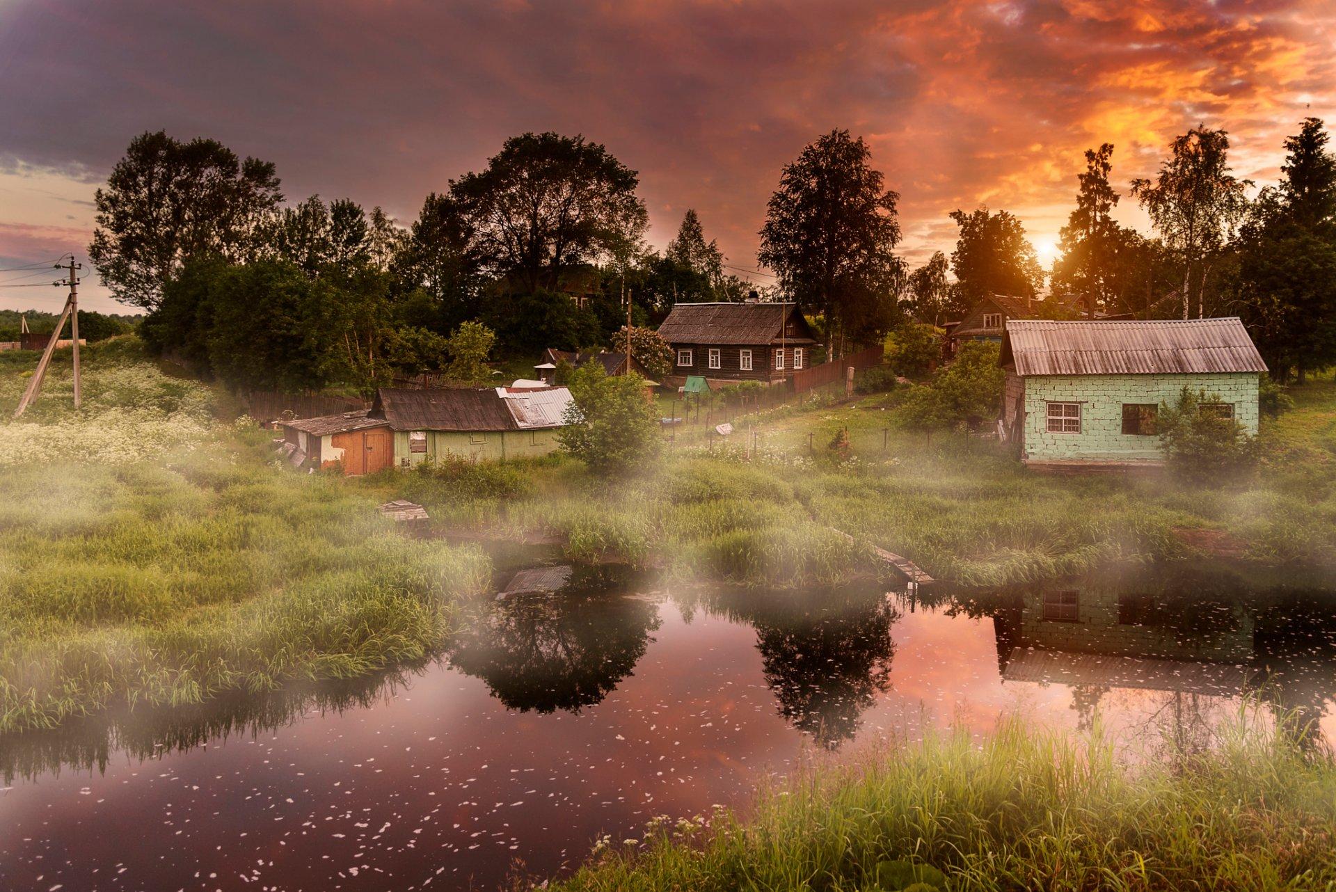 рассвет в деревне