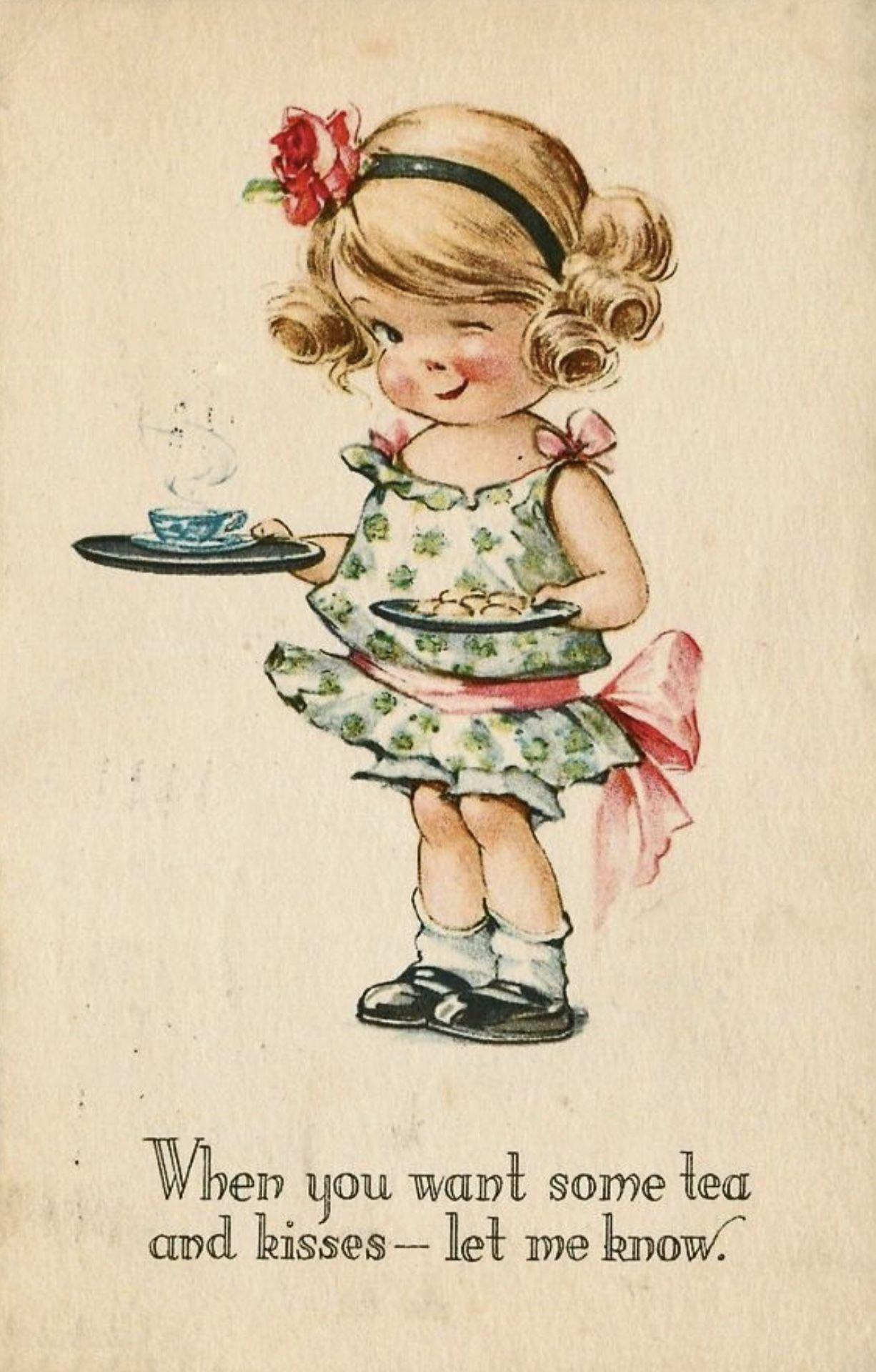 ретро открытка чаепитие