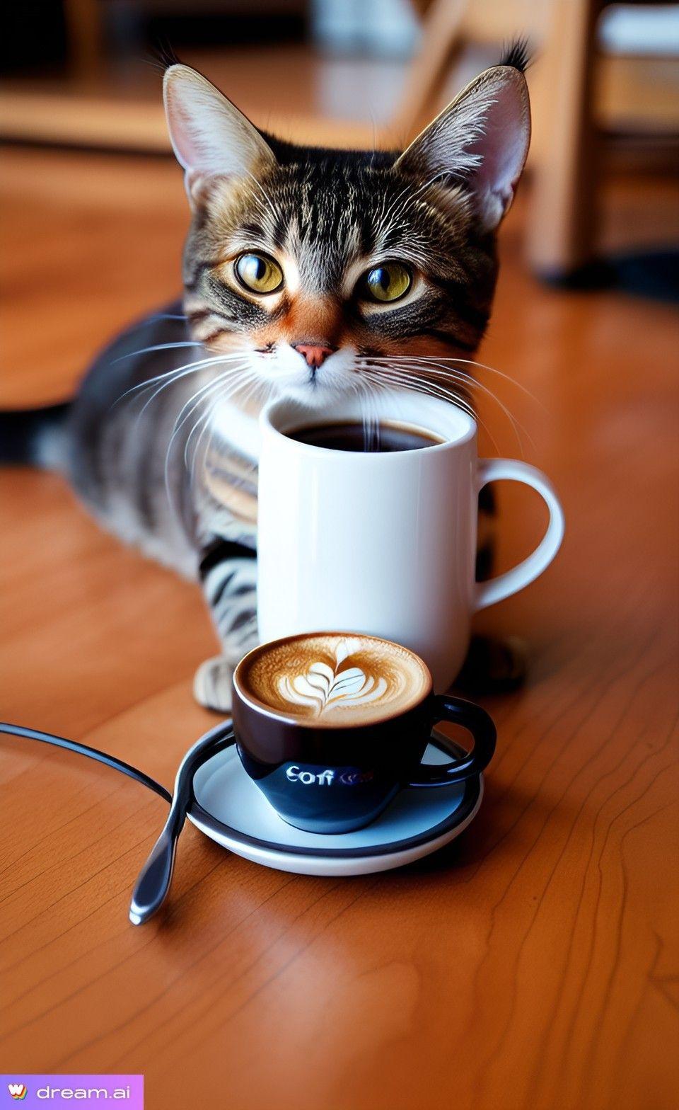 кот пьет чай