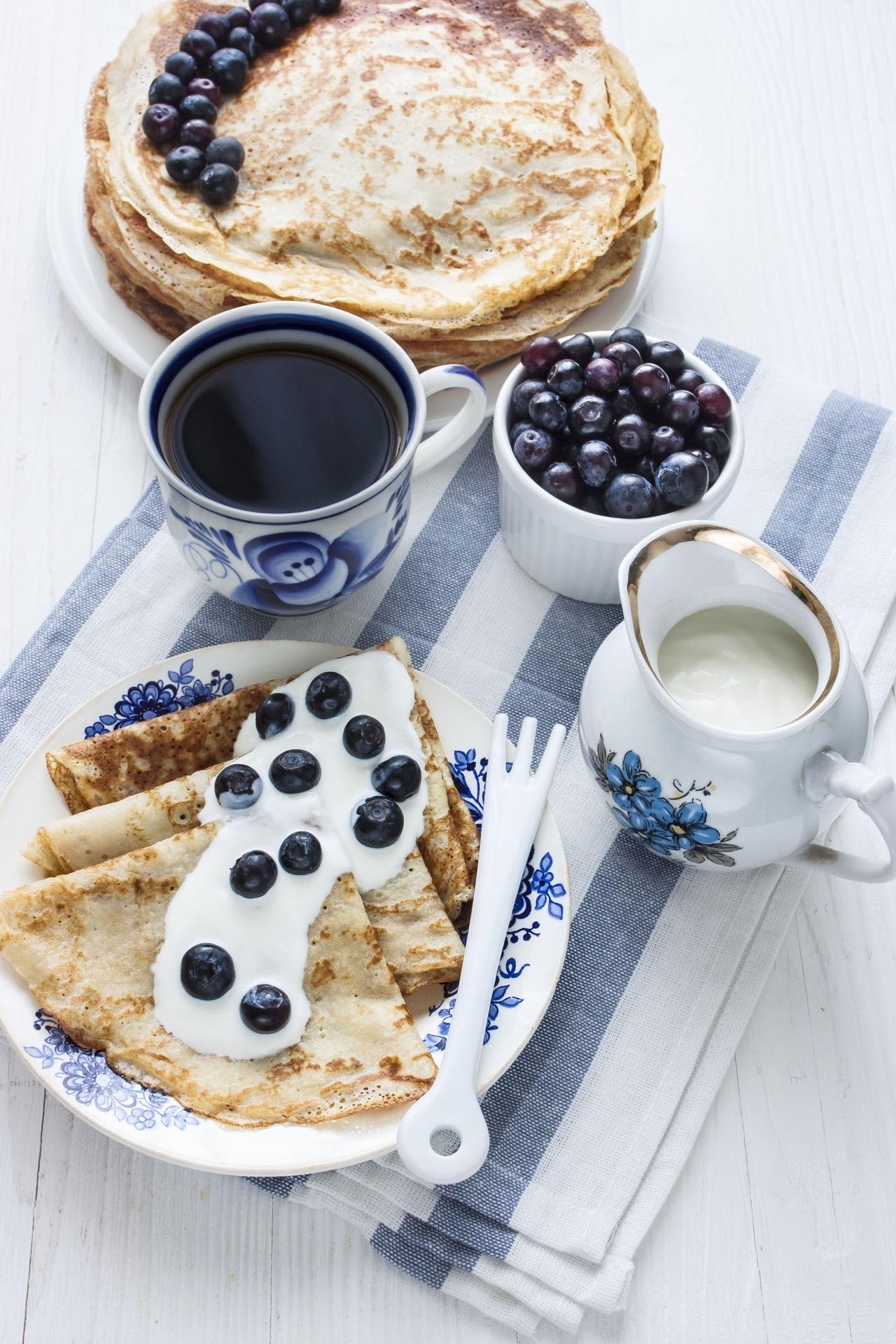 завтрак блины и кофе
