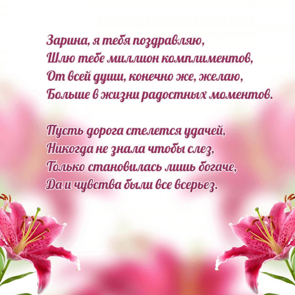 с днем рождения зарина