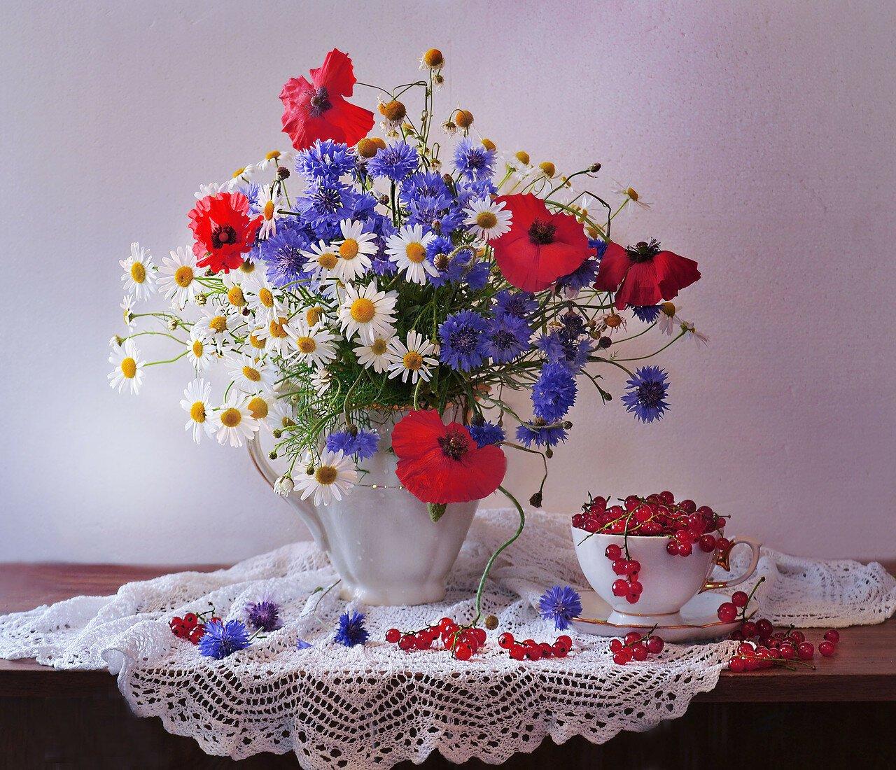 букеты полевых васильков ромашек маков