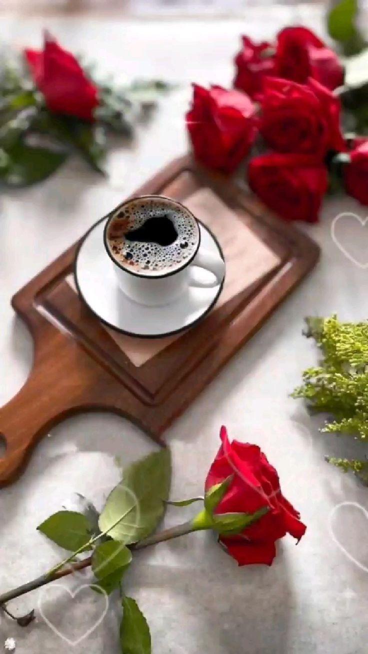 coffee with red roses