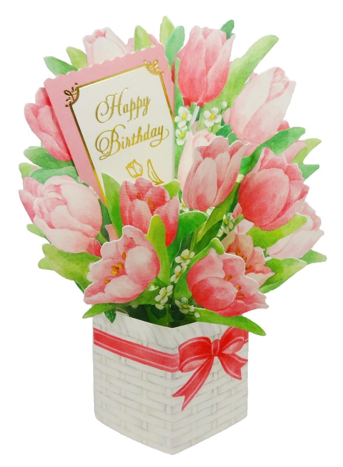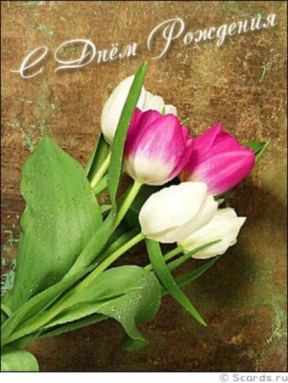 открытка с днём рождения с тюльпанами женщине