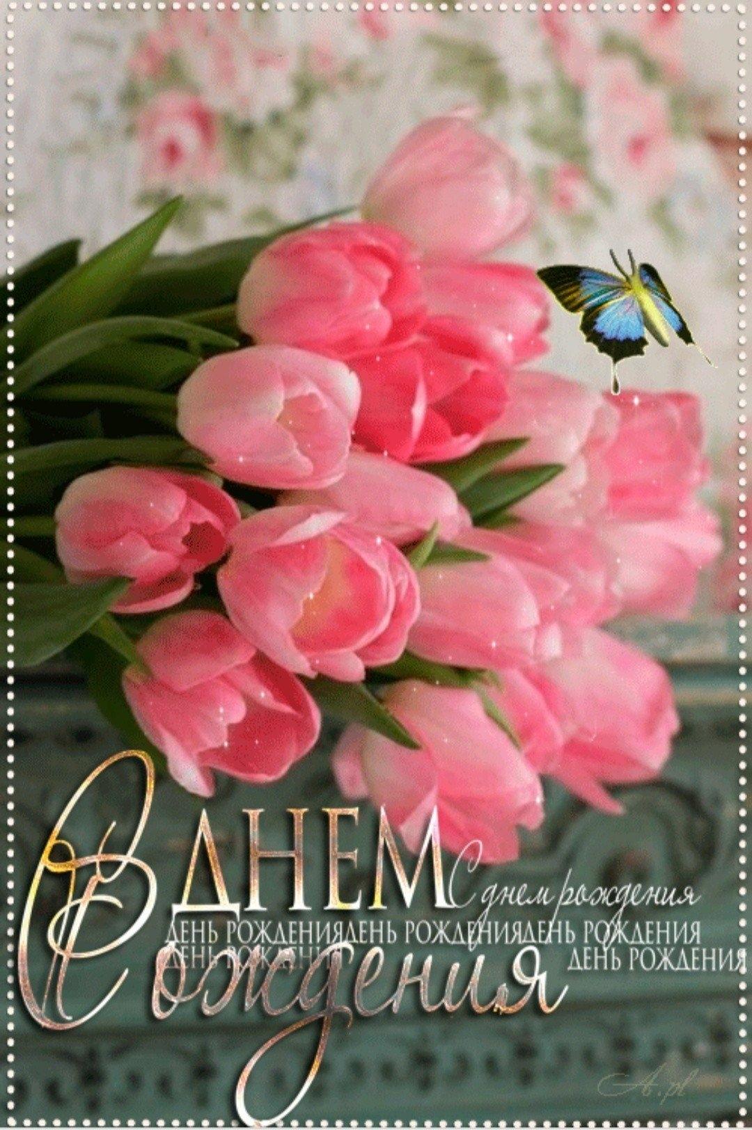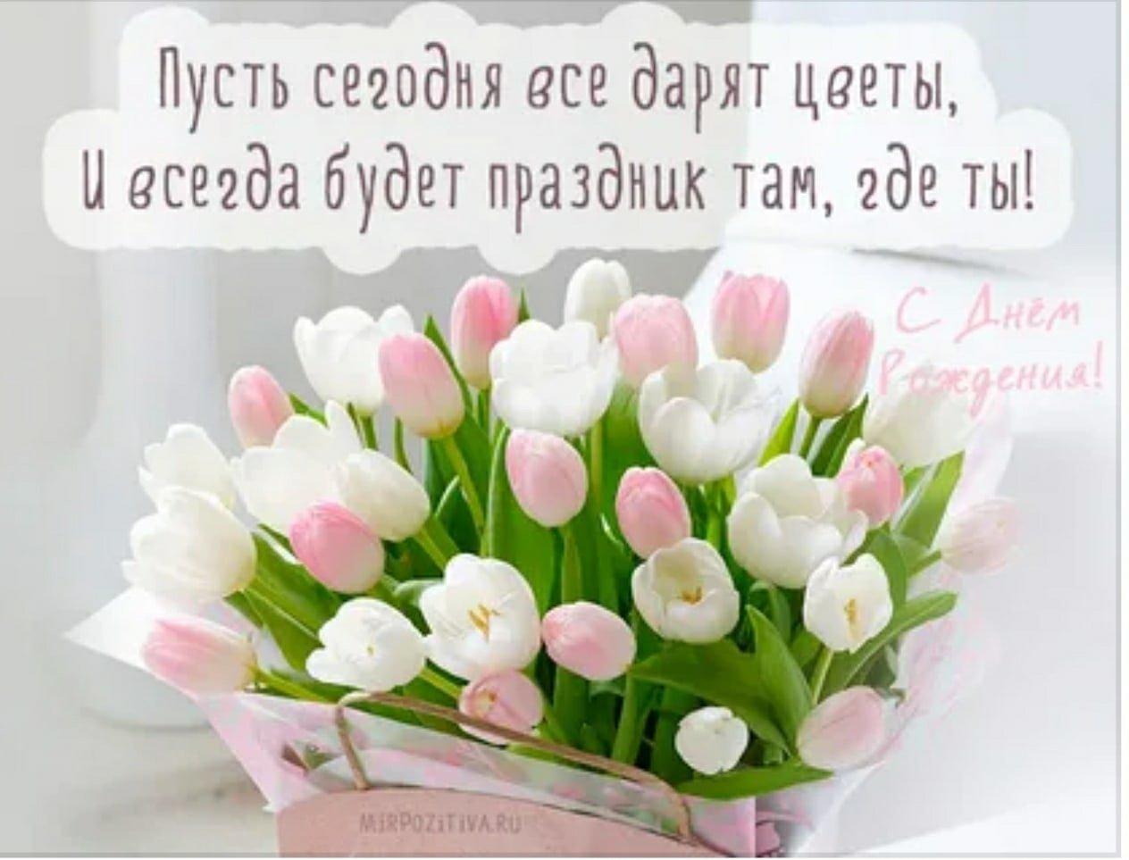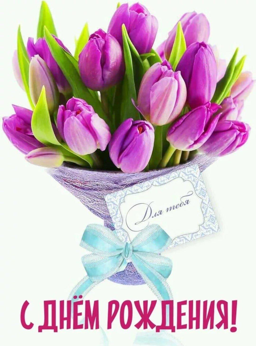 Красивые картинки С днем рождения женщине тюльпаны с надписями