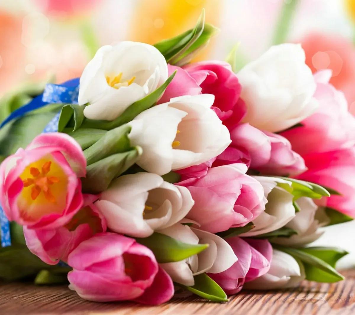 красивый букет тюльпанов с днем рождения