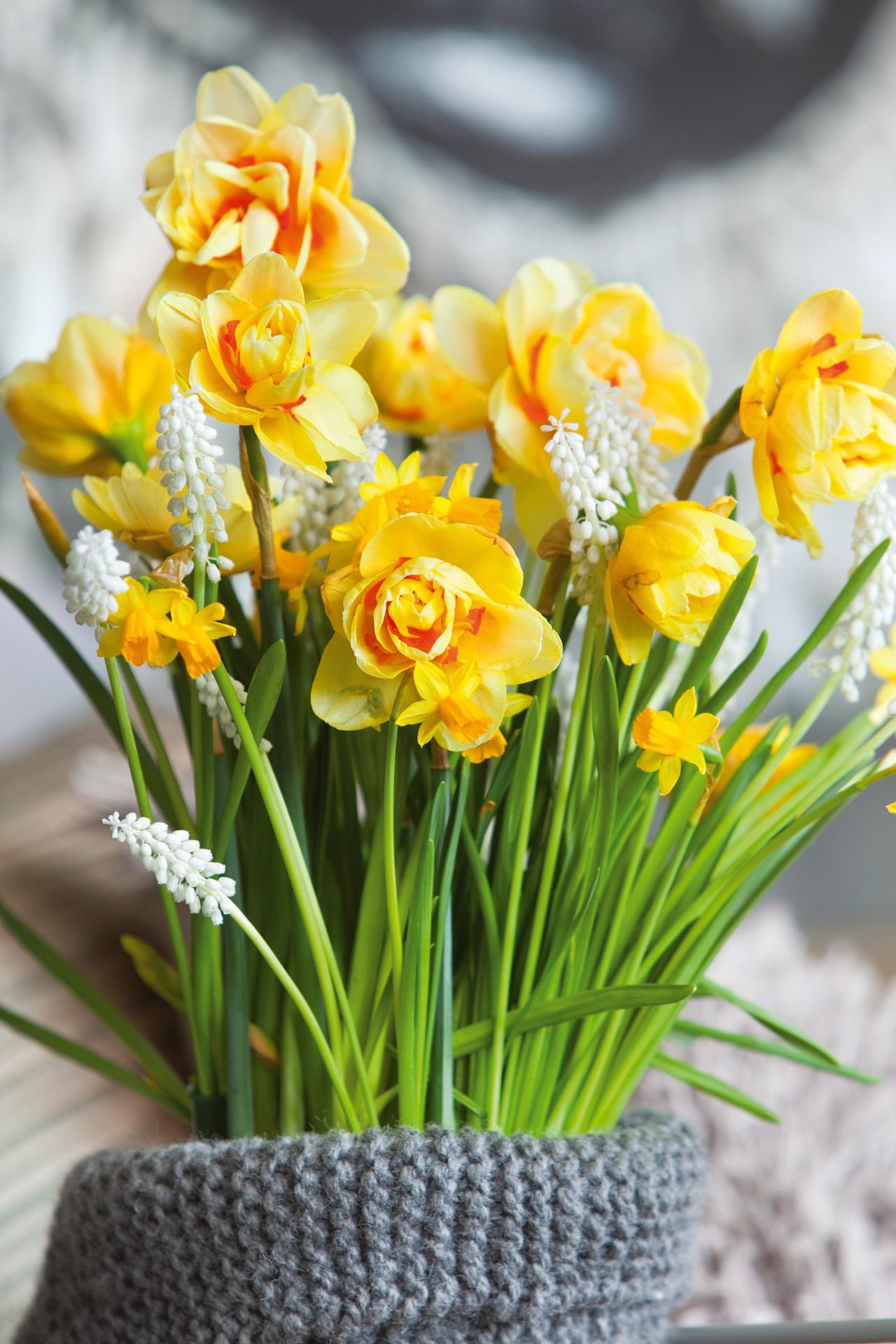 букет из незабудок и нарциссов
