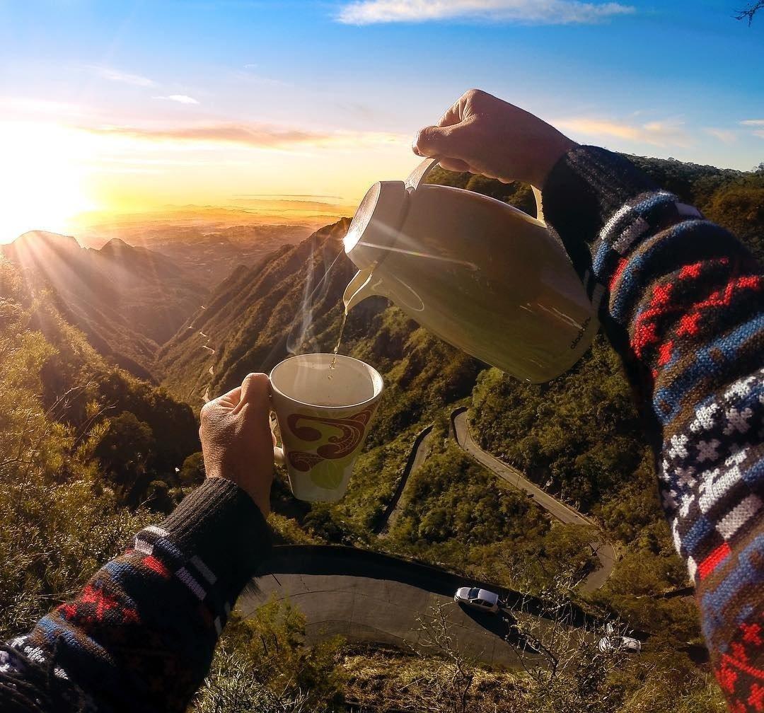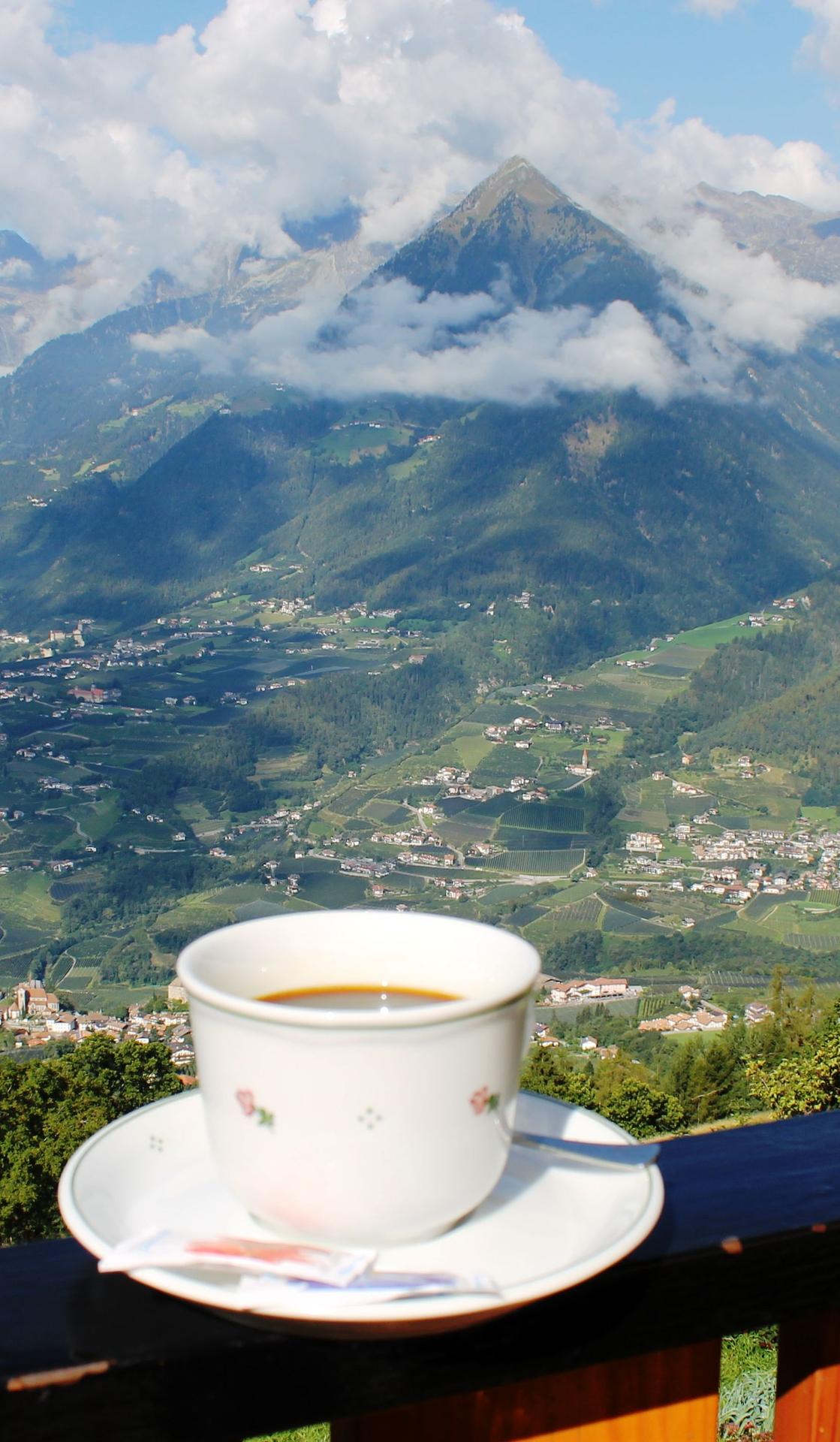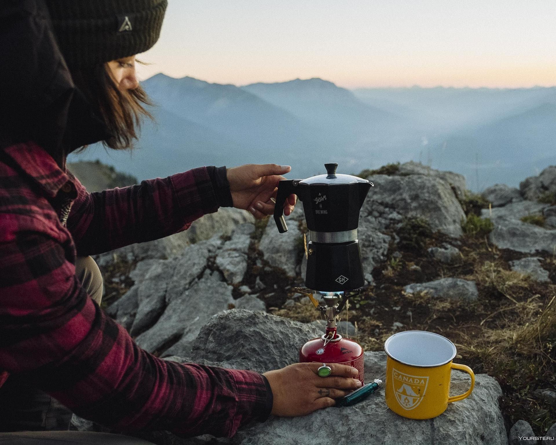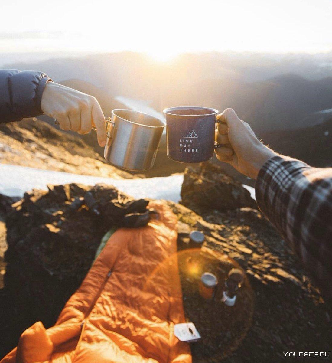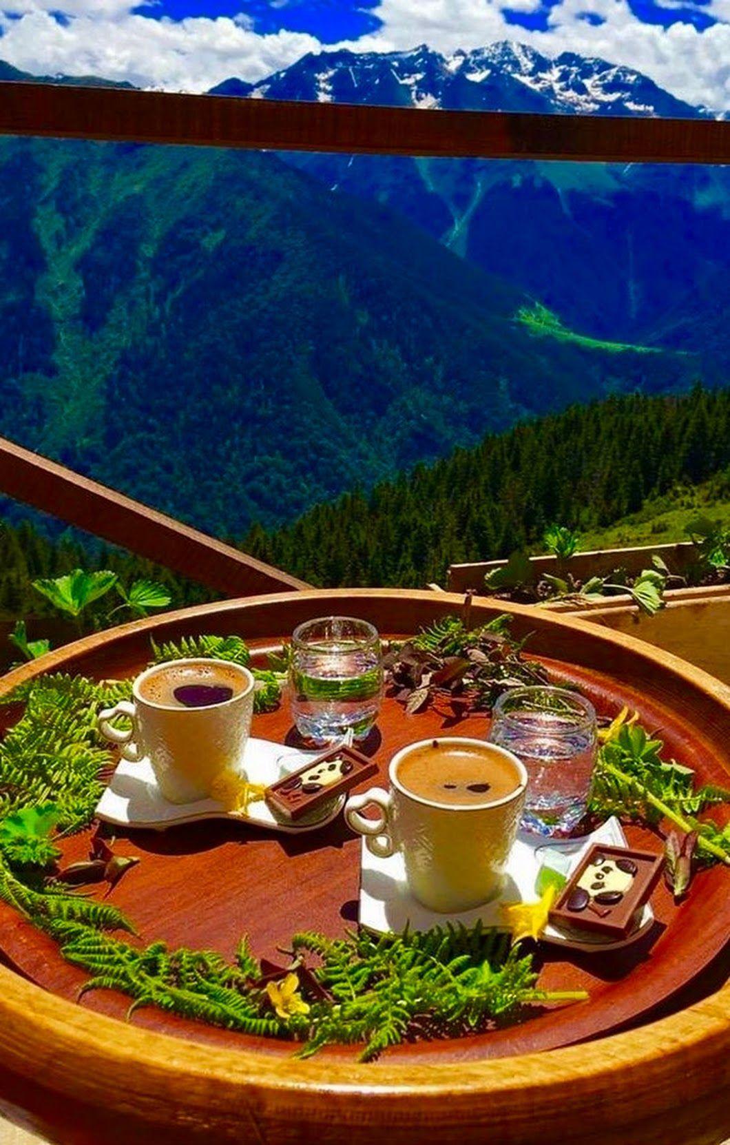 кофе на фоне гор