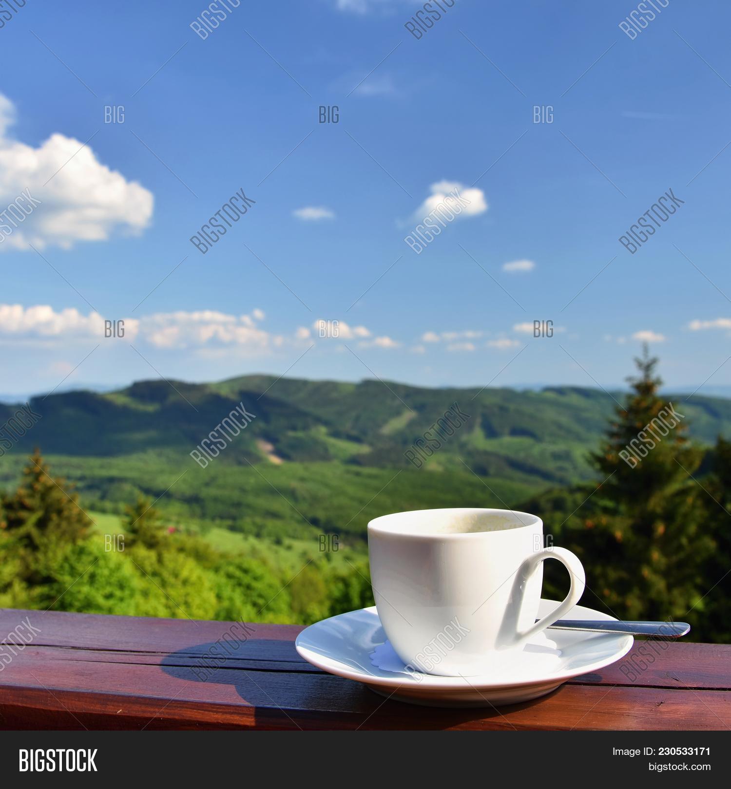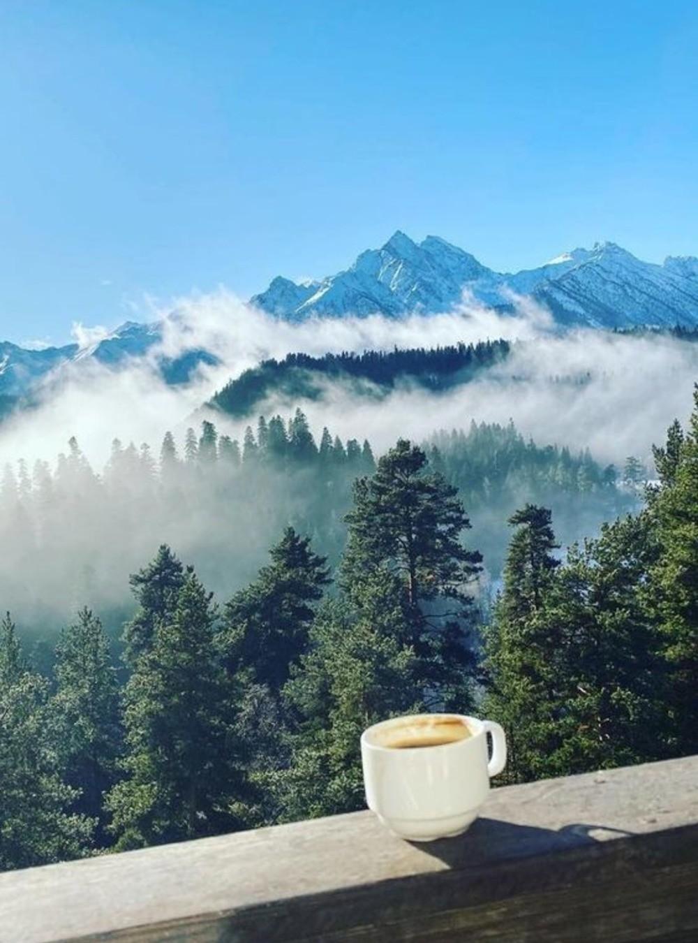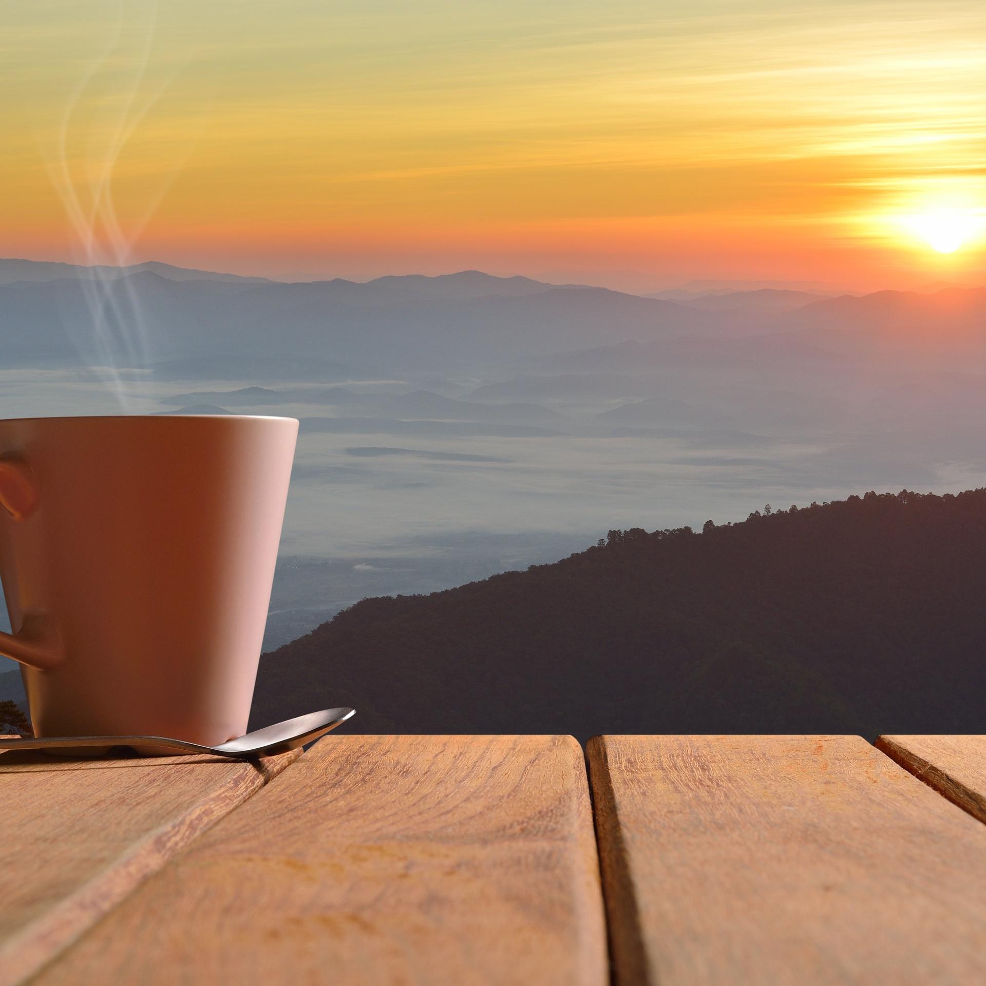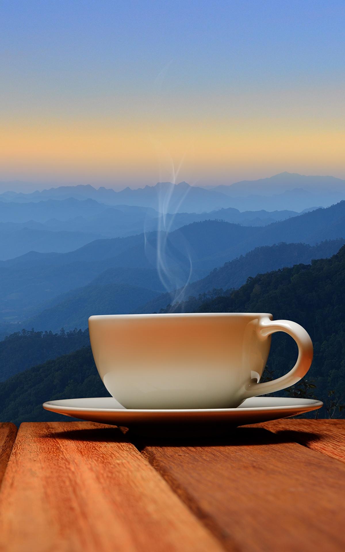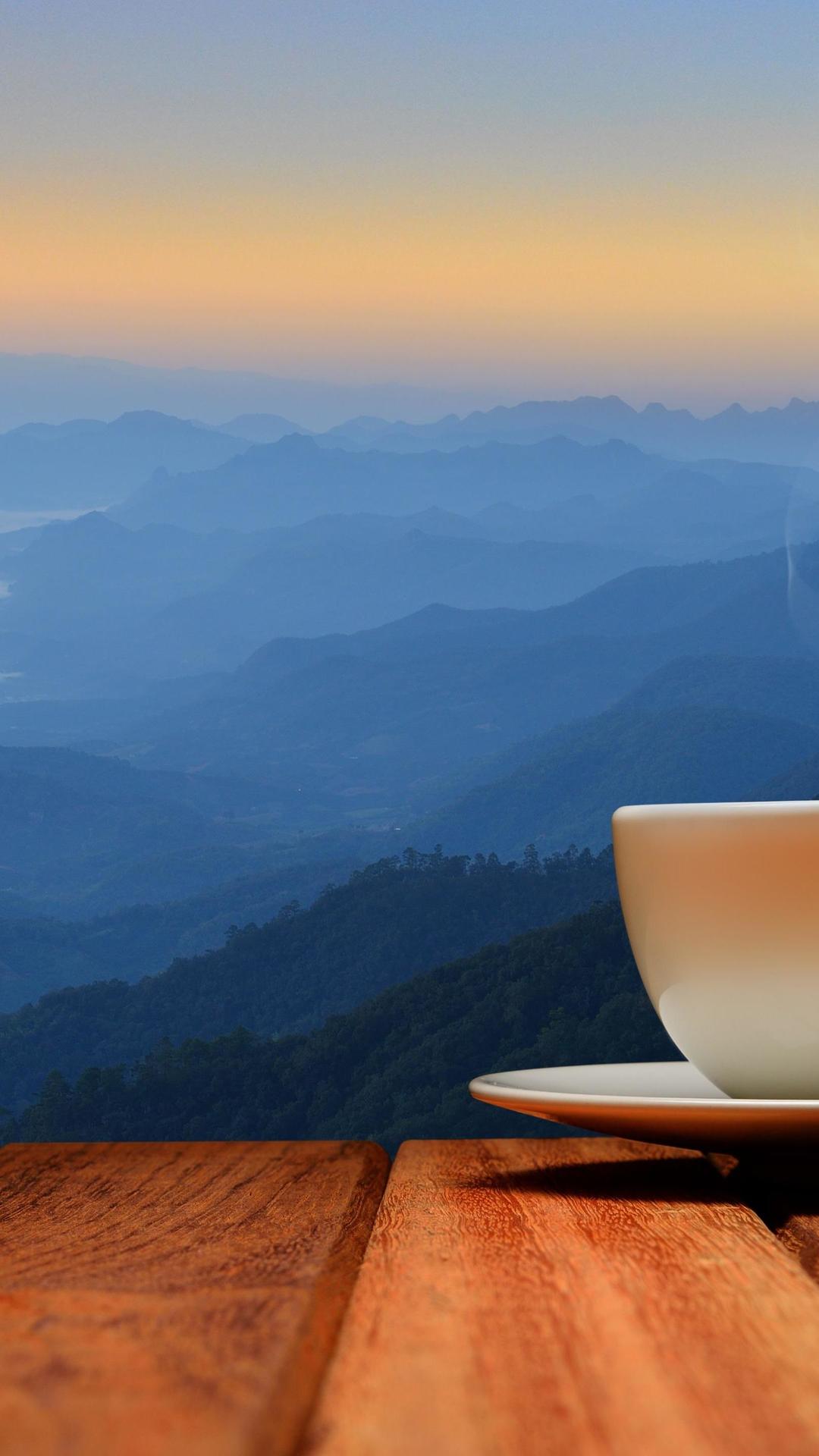 кофе на фоне гор